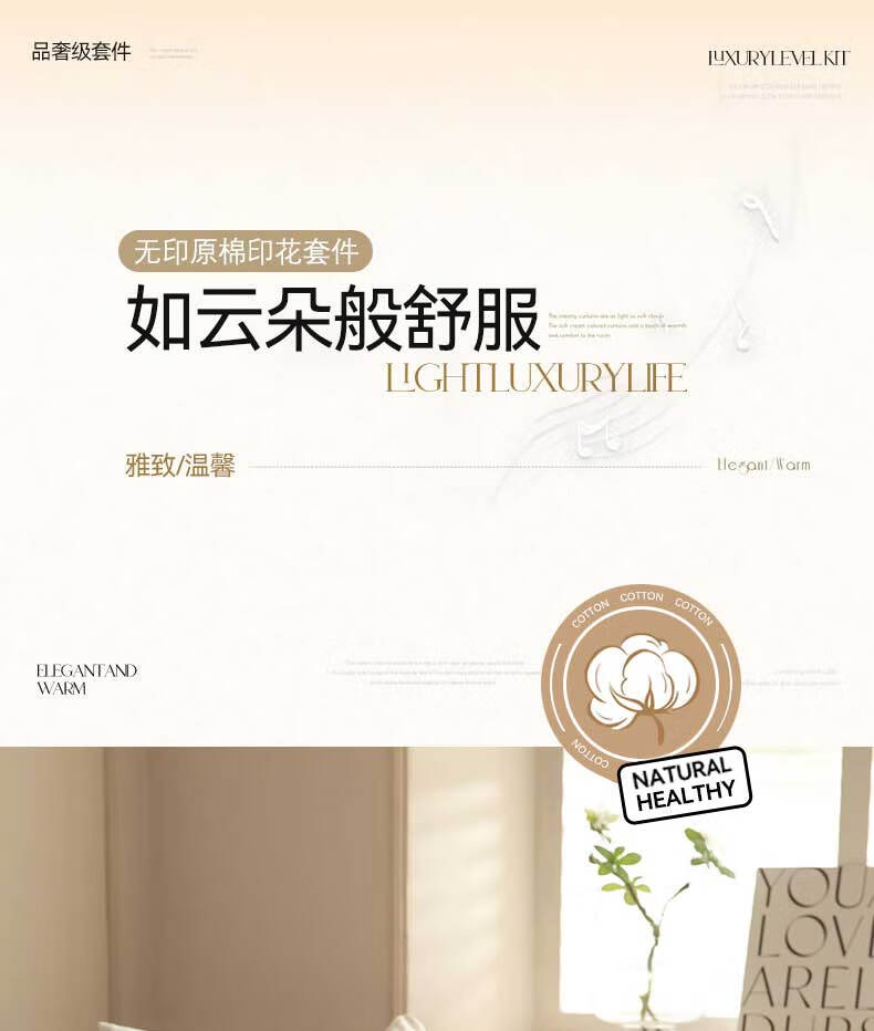 约克罗兰 无印风印花原棉四件套YTJ4110