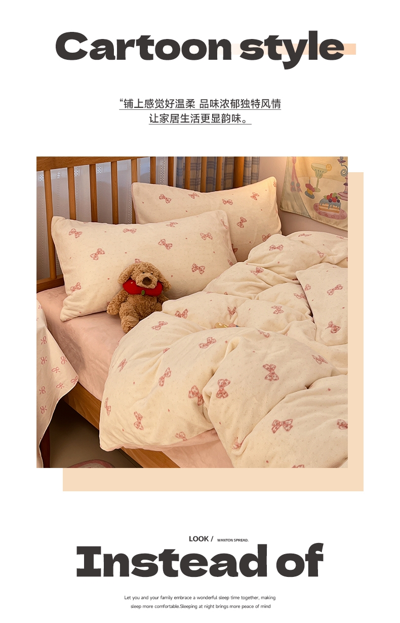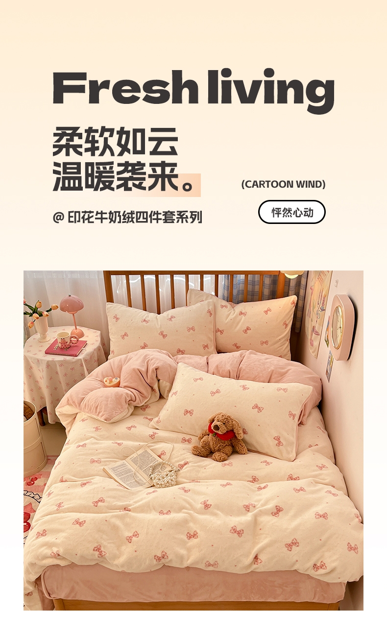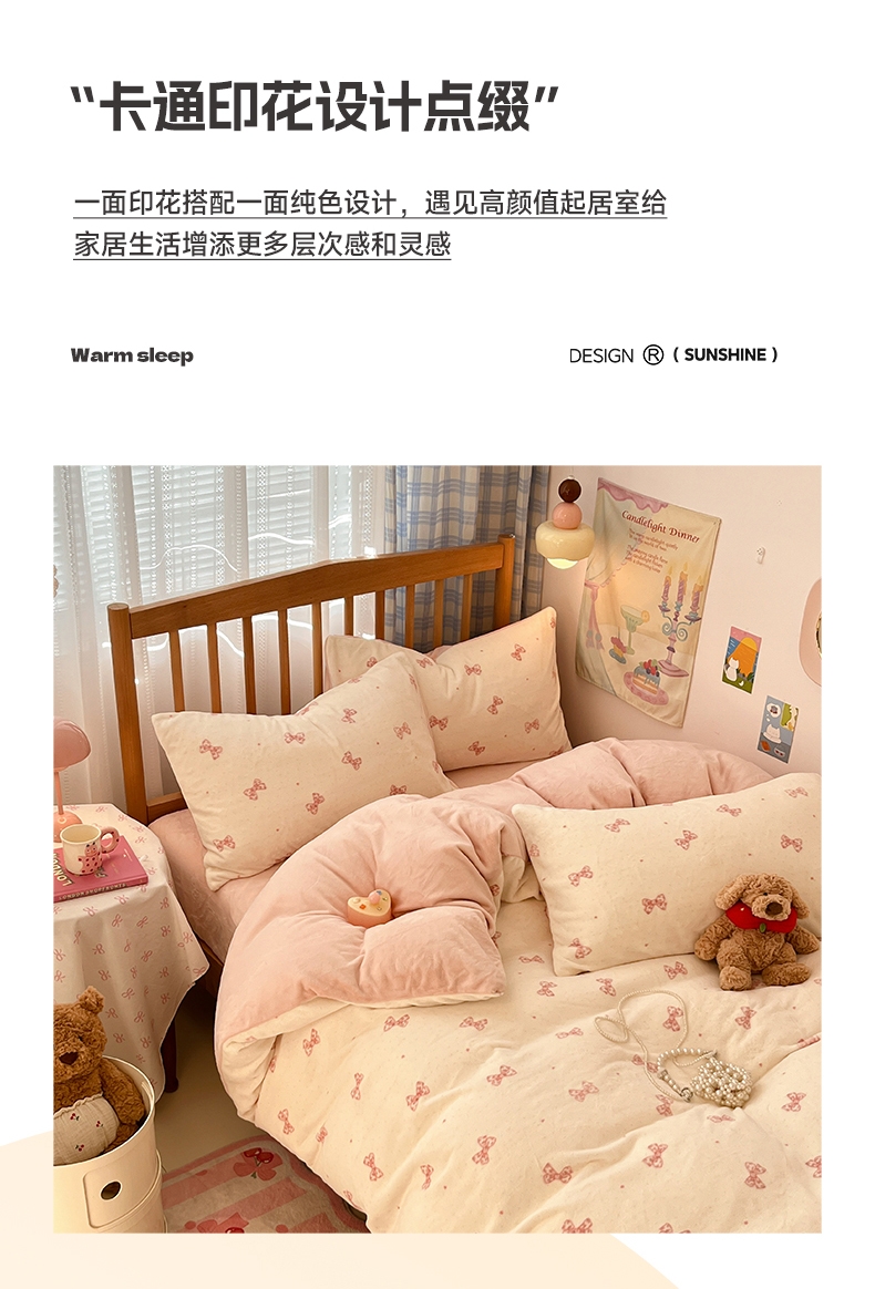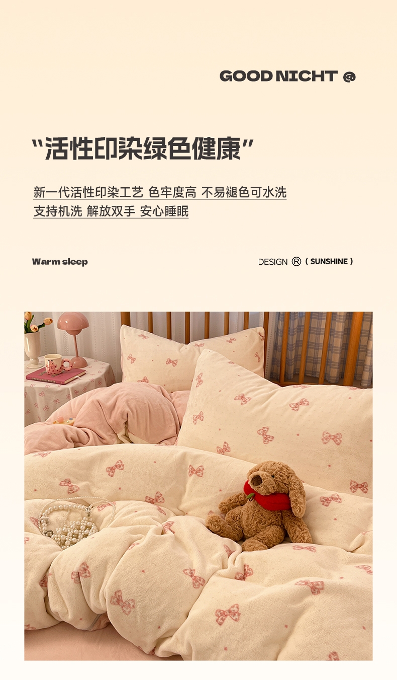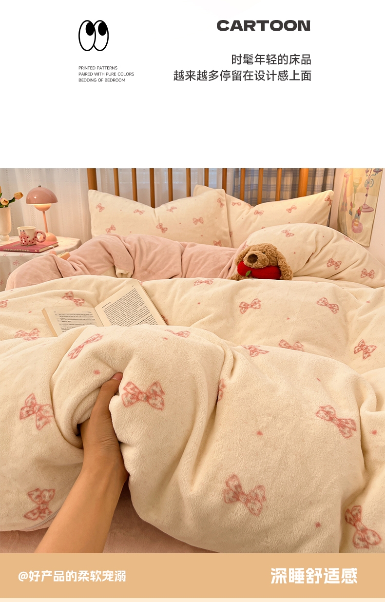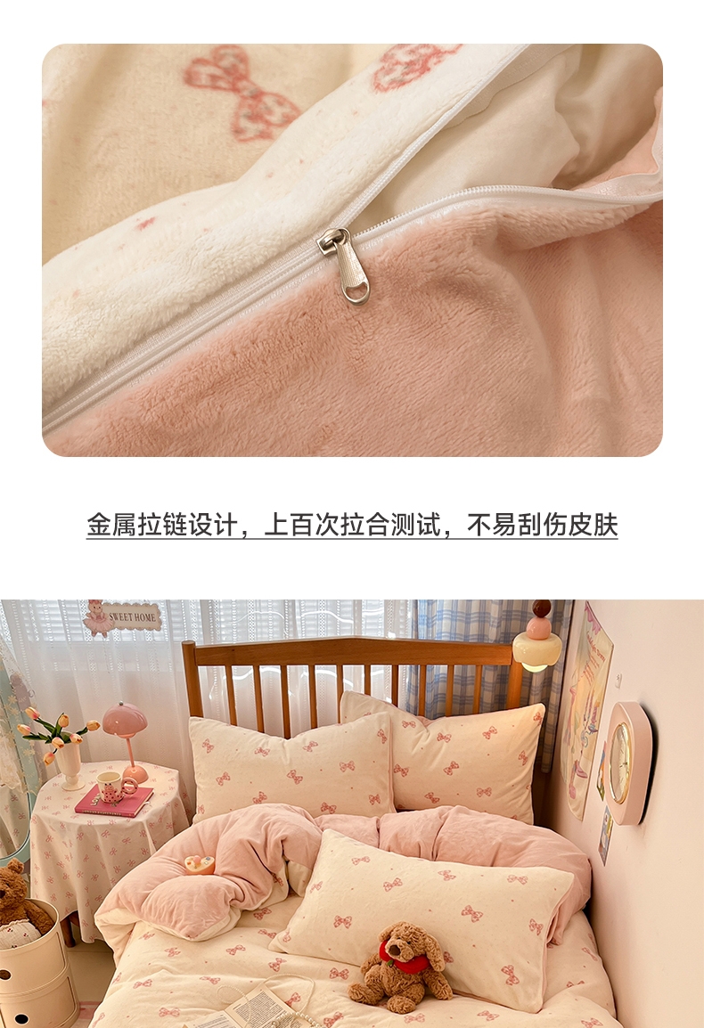约克罗兰 牛奶绒四件套桃漾绮梦YTJ5107