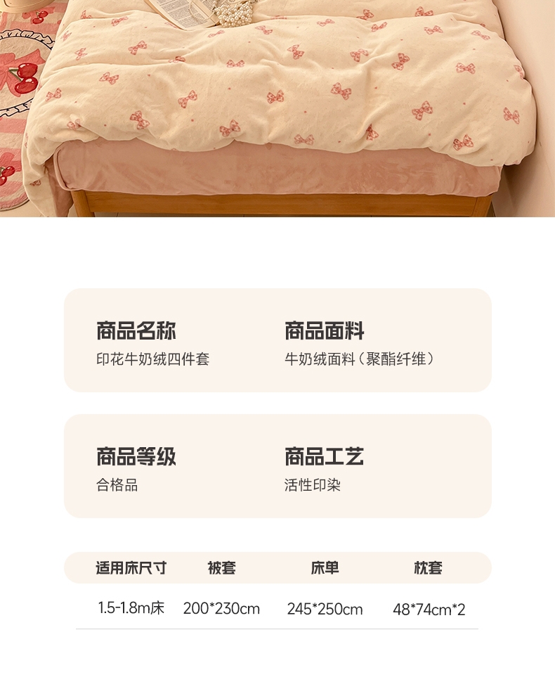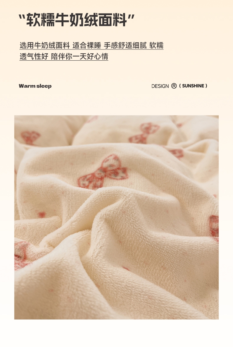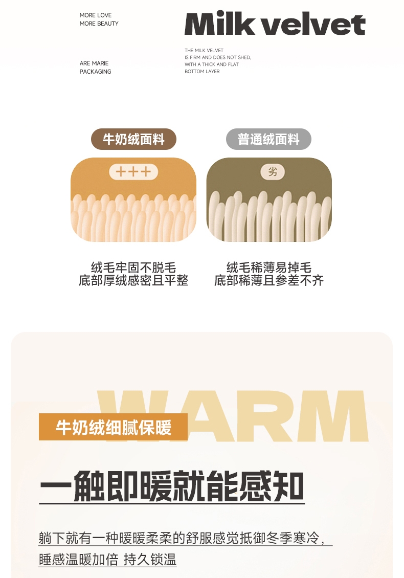 牛奶绒绒面细腻柔滑;简约时尚的现代风;独特的纤维结构,能储存大量热空气