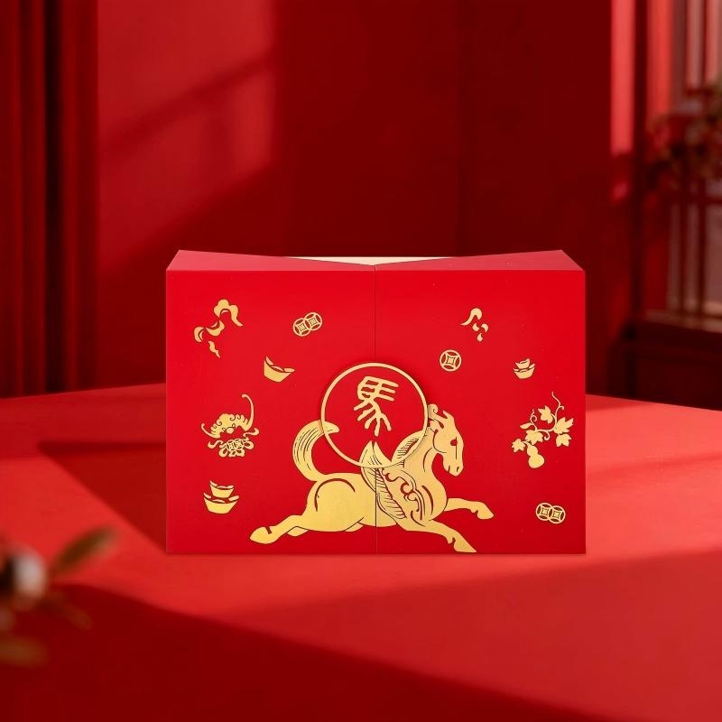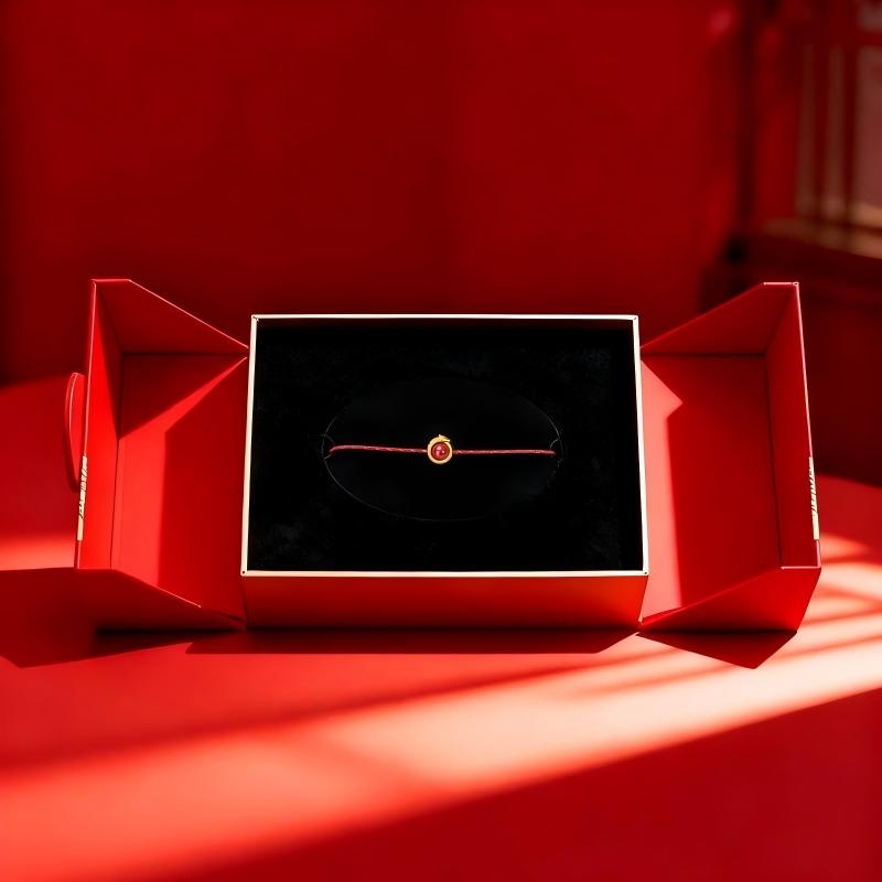 来财马 黄金转运珠红绳,选高含量朱砂为主石;搭配定制的手工编织红金手绳,寓意鸿运当头;马上来财。礼盒延续了经典的红色对开礼物盒;集齐饱含寓意的祥瑞图案,包揽你的一整年好运