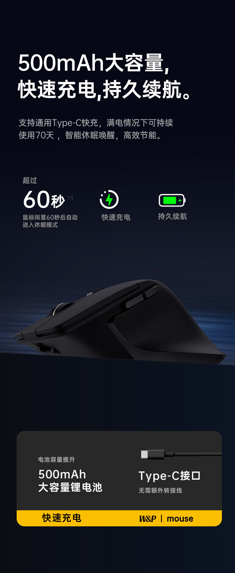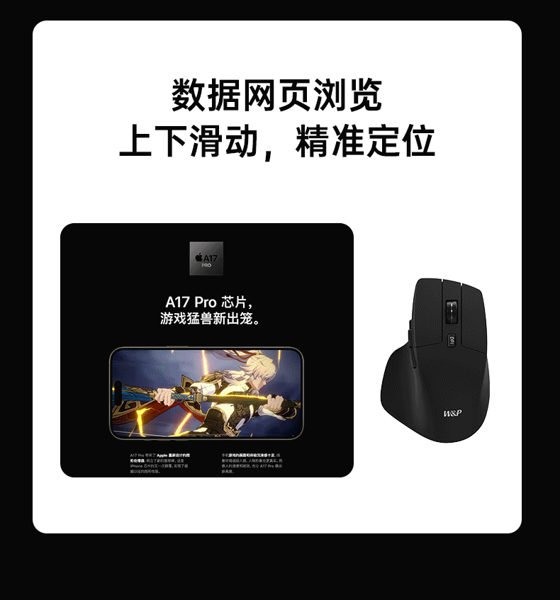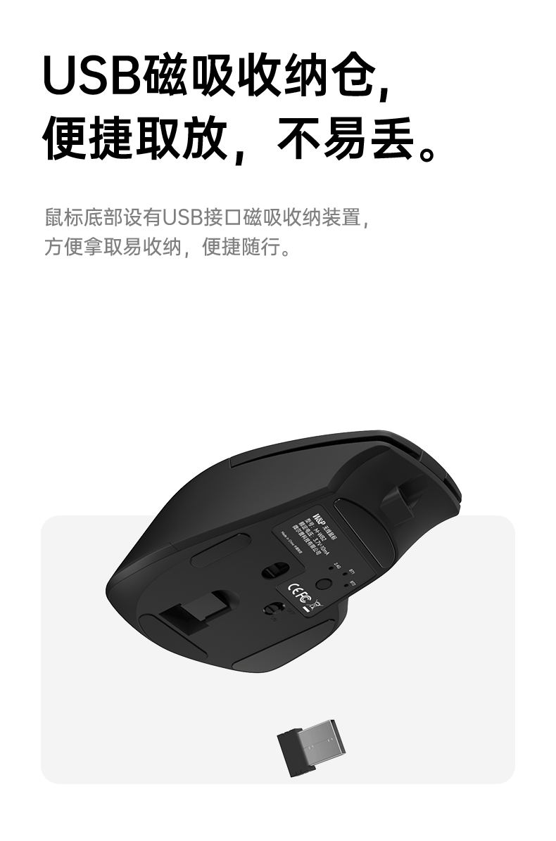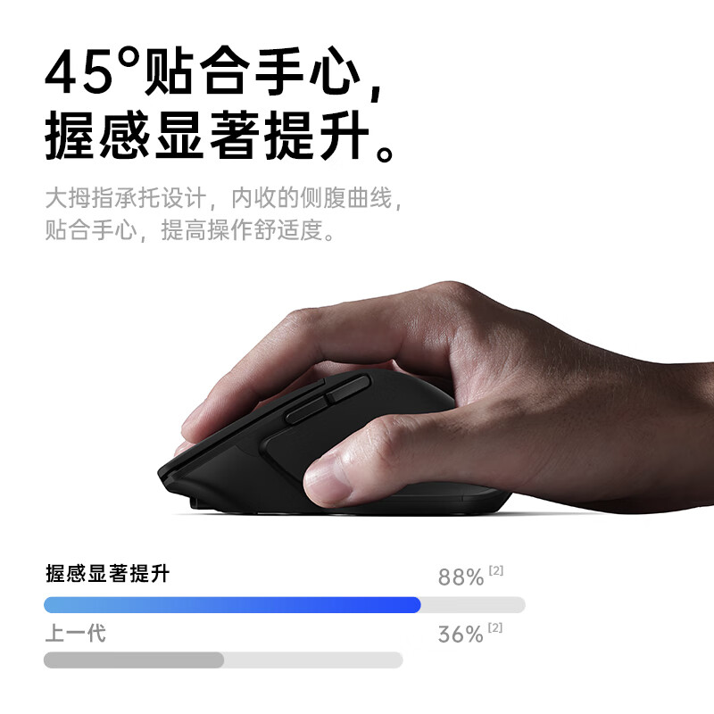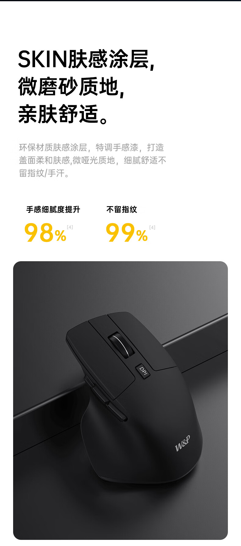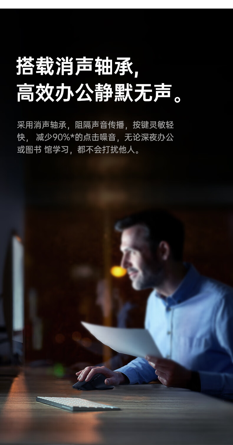 人体工学 无线鼠标;支持无线三模多元配对一键切换。;搭载消声轴承 高效办公静默无声