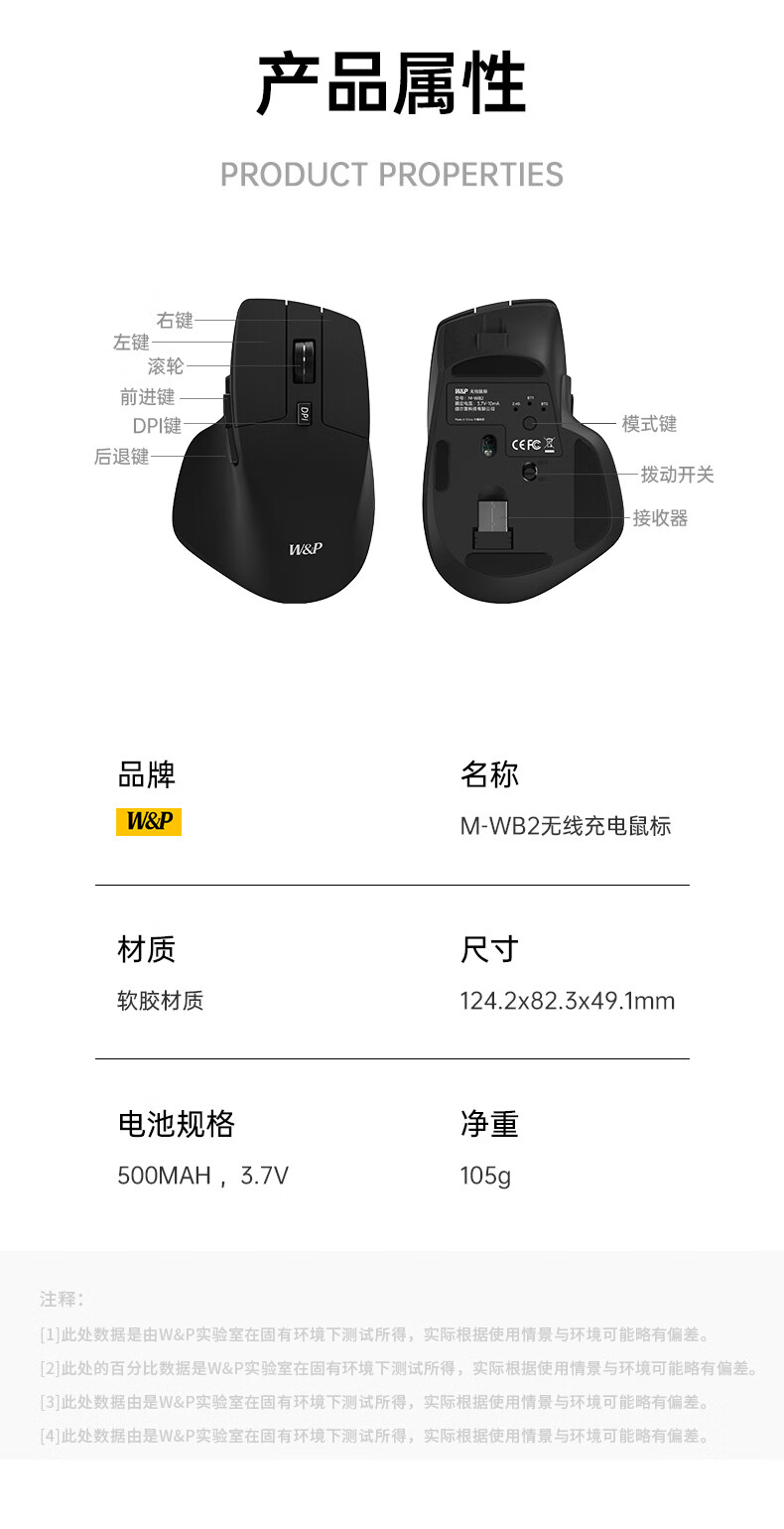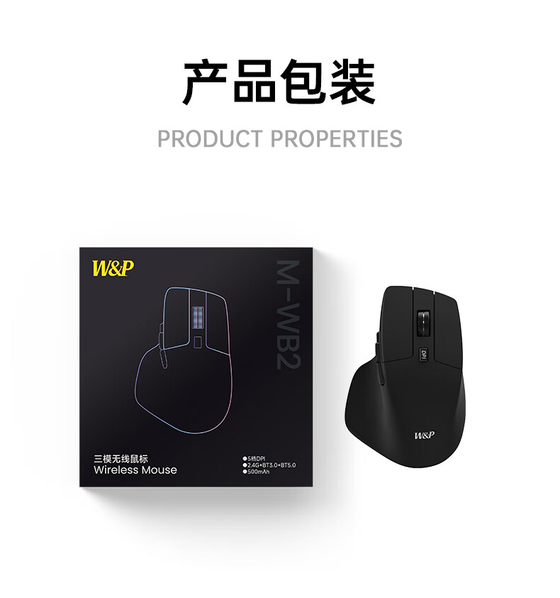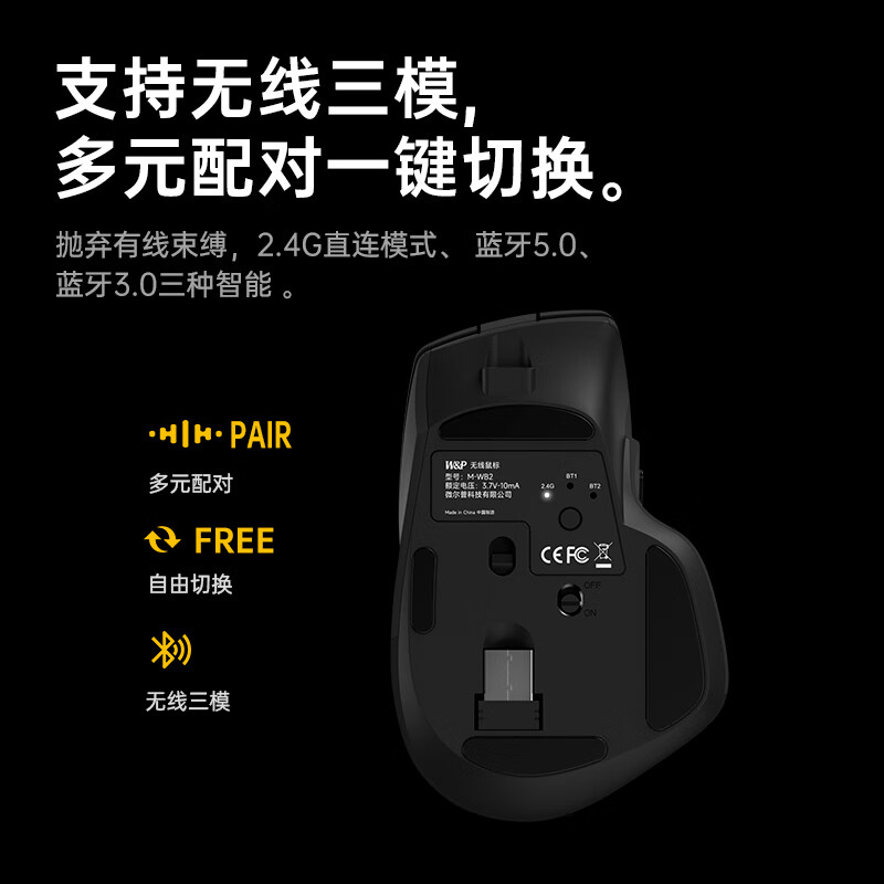 W&P 无线静音鼠标三模蓝牙人体工学M-WB2