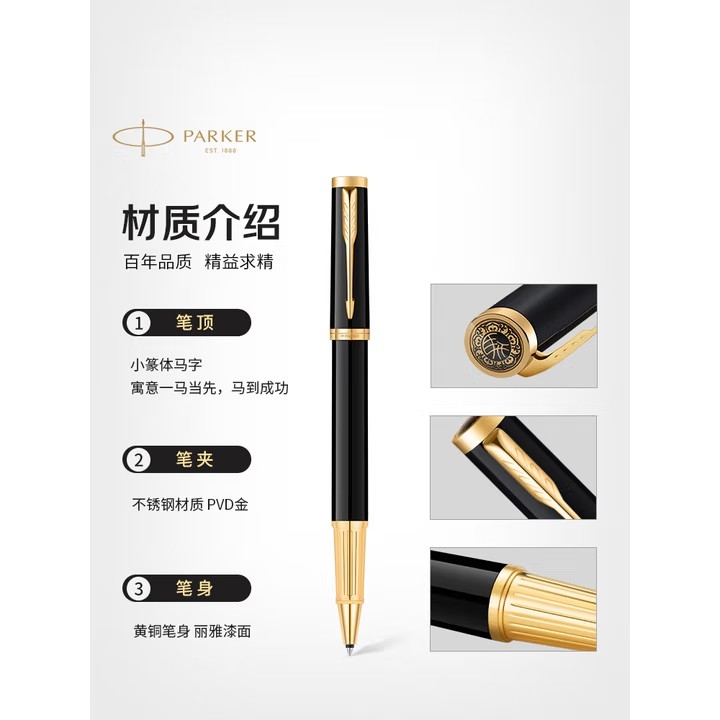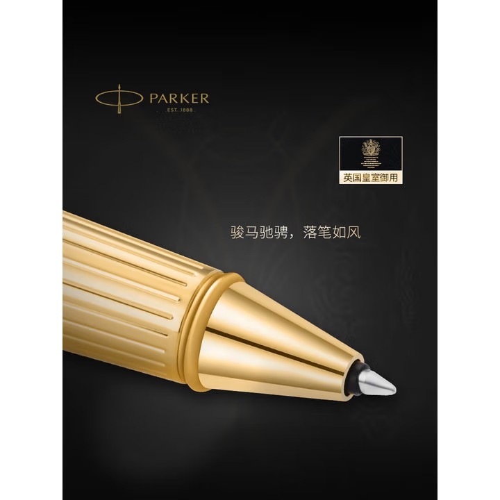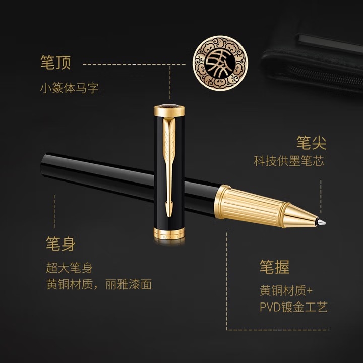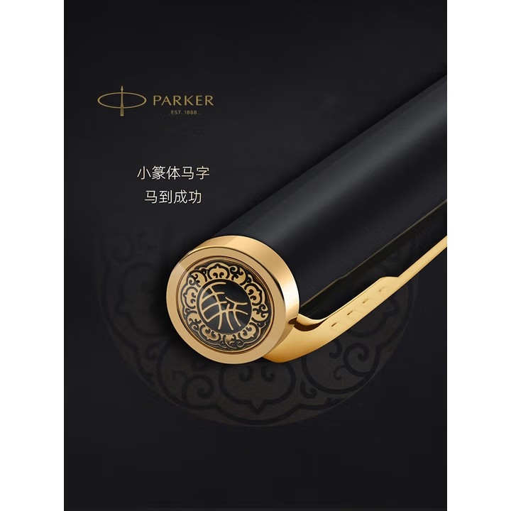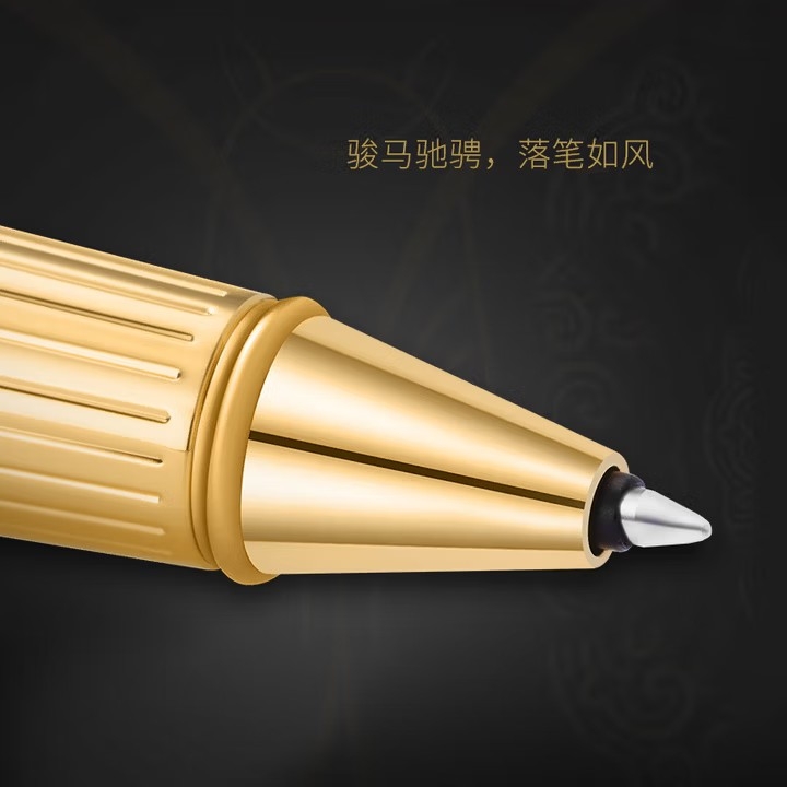 派克精英飞马金夹款,尊崇之选;黄铜材质笔身勾勒流云纹路,体现精英领袖风范;小篆体马字,寓意一马当先,马到成功