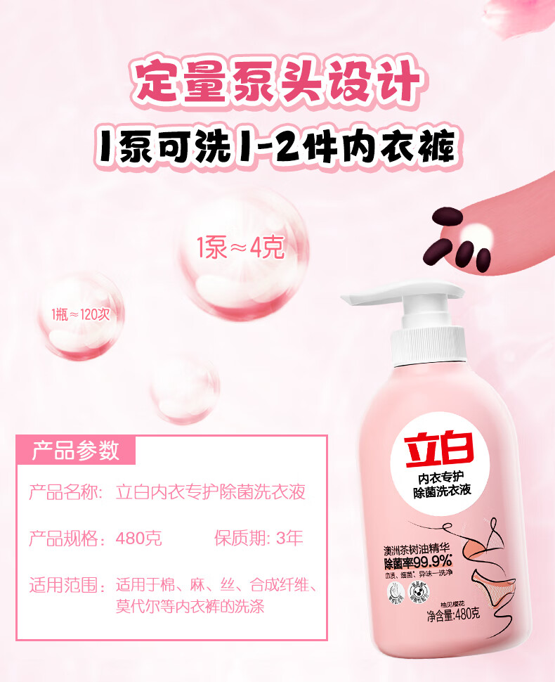 配置清单:瓶装洗衣液1kg*2+洗衣液袋装500*4+内衣洗衣液480*1