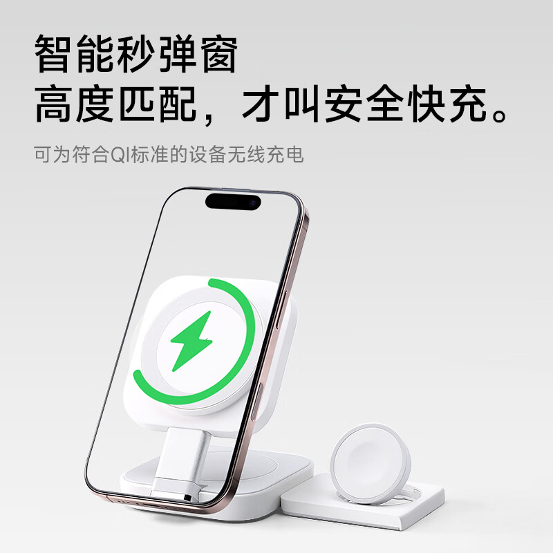 智能秒弹窗高度匹配,才叫安全快充。;四曲双折叠机身精巧设计,精妙层出;1=3的时代充电不再是件麻烦事。