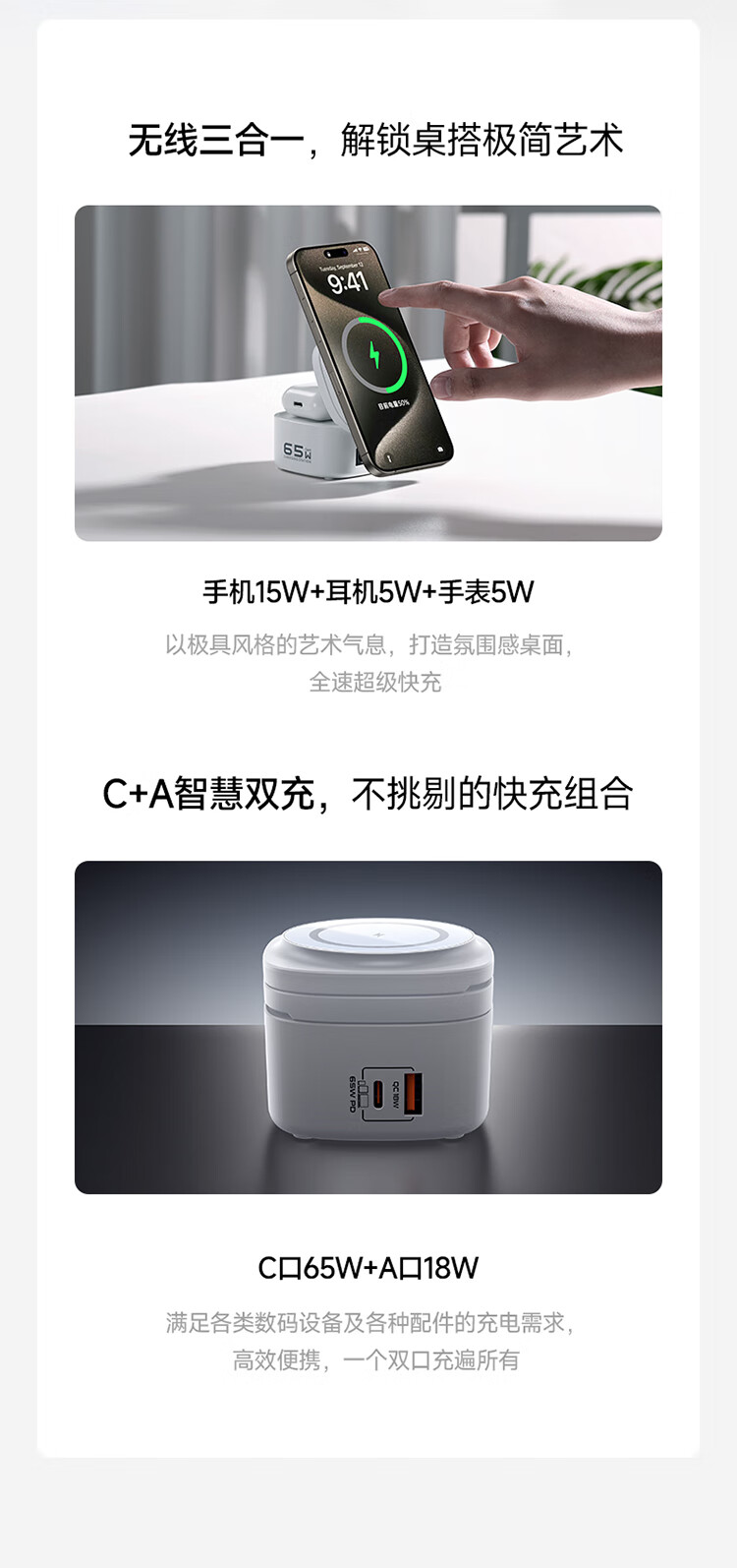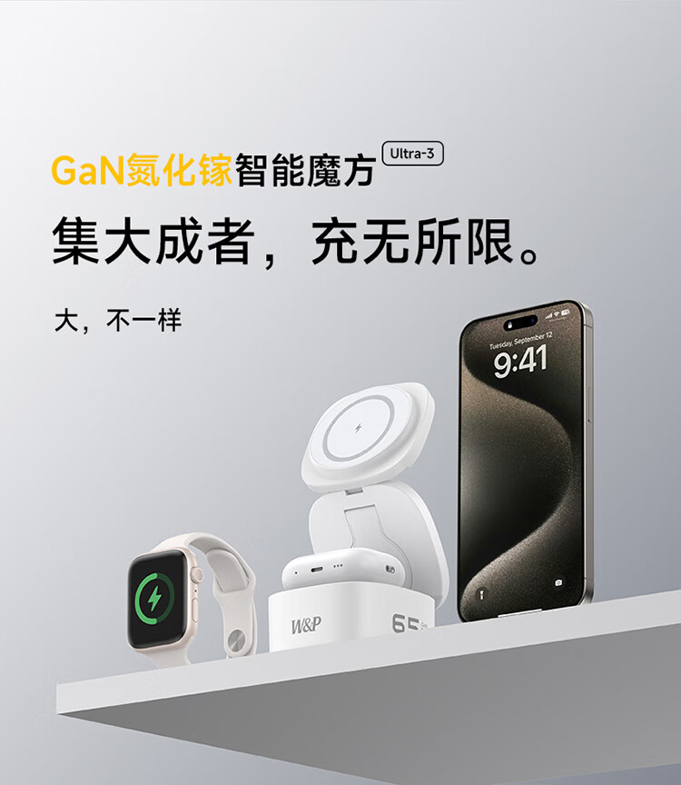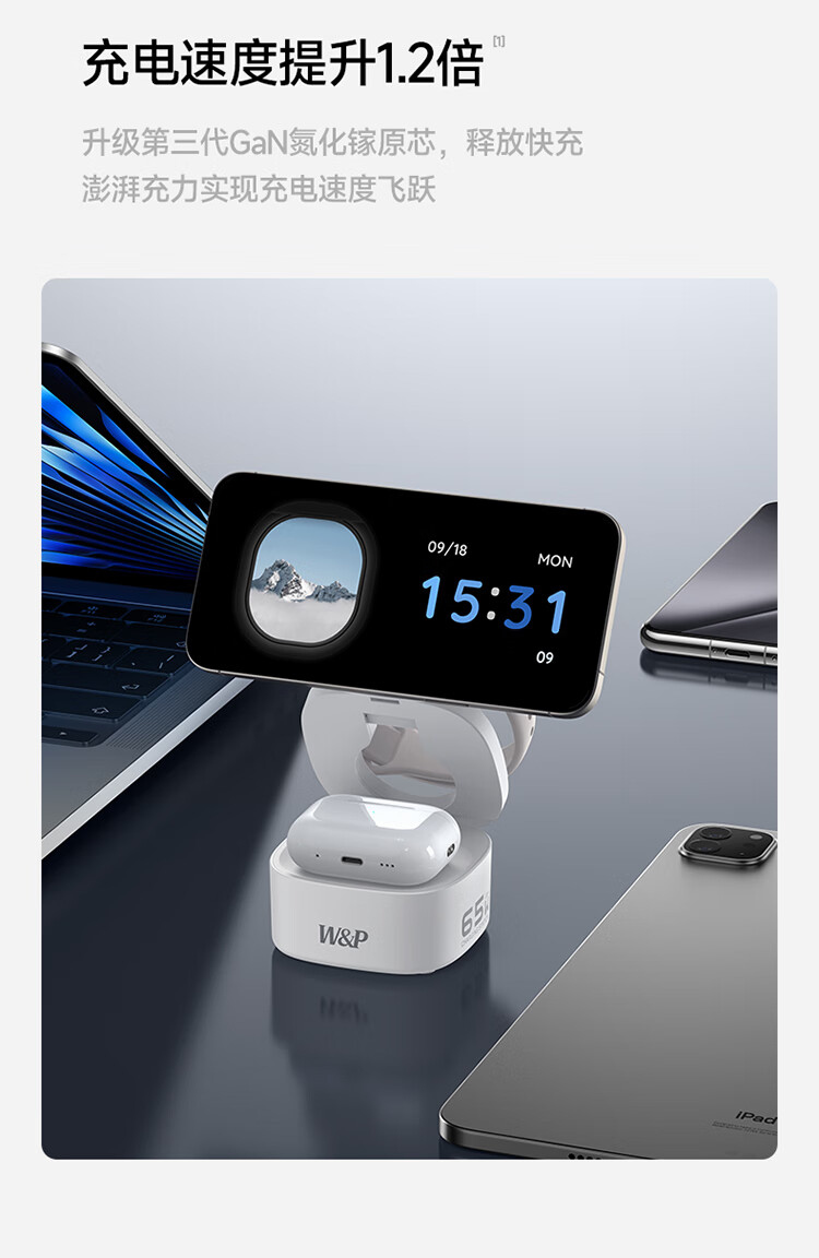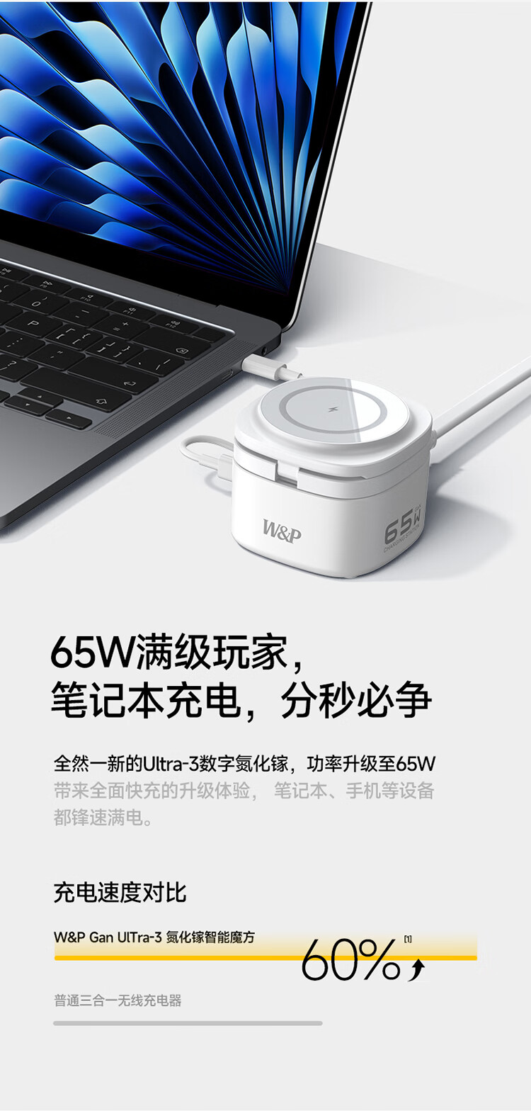 65W氮化镓五合一;覆盖设备全家桶五效合一;65W满级玩家笔记本充电,分秒必争