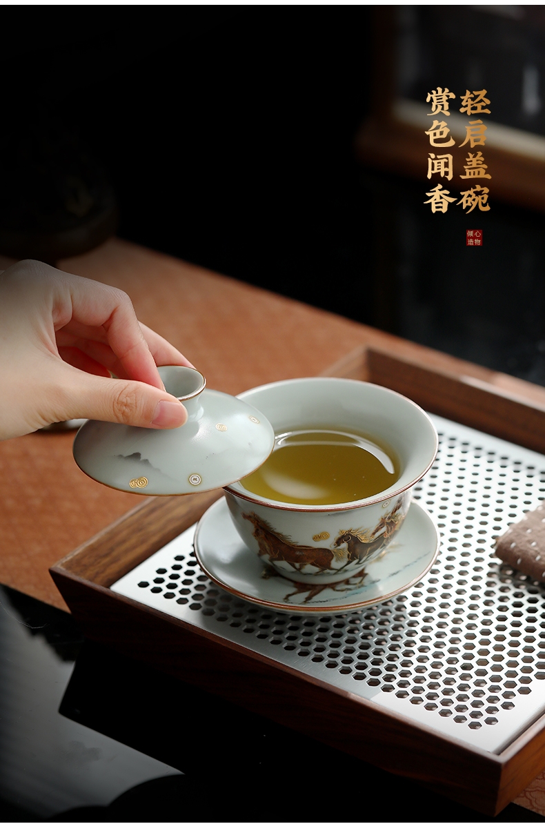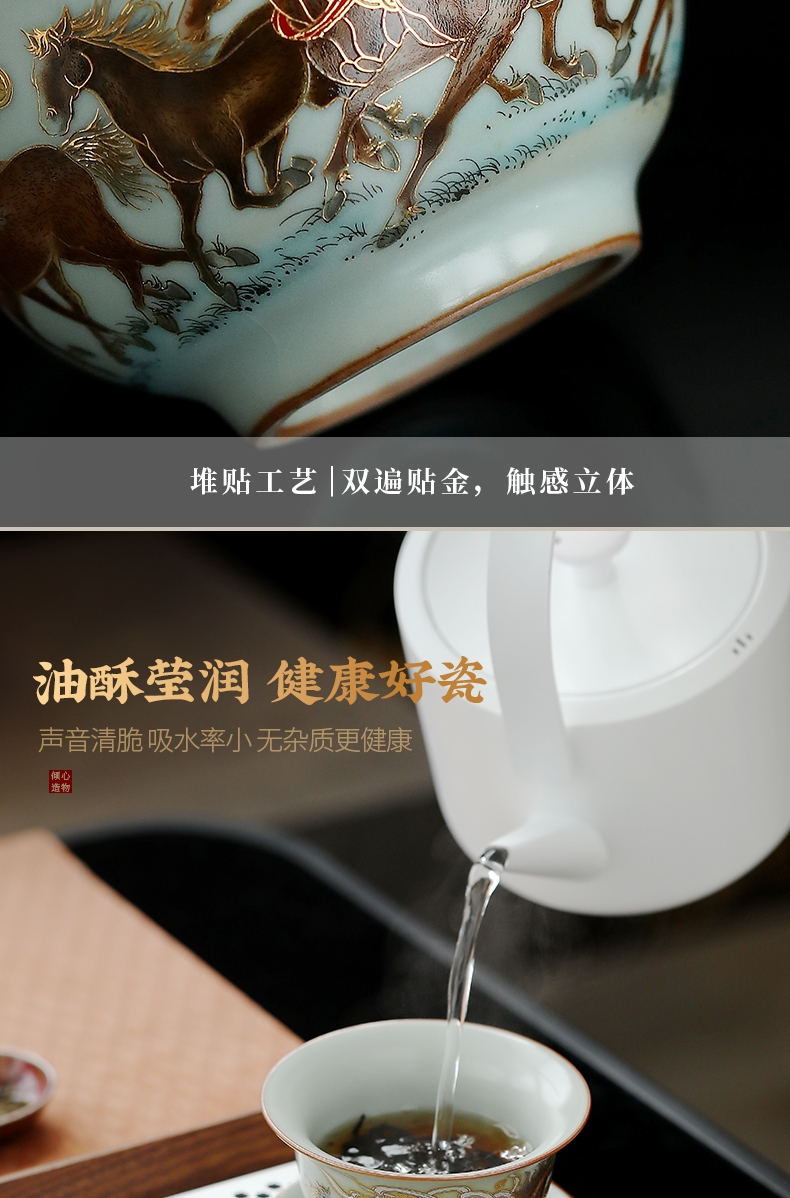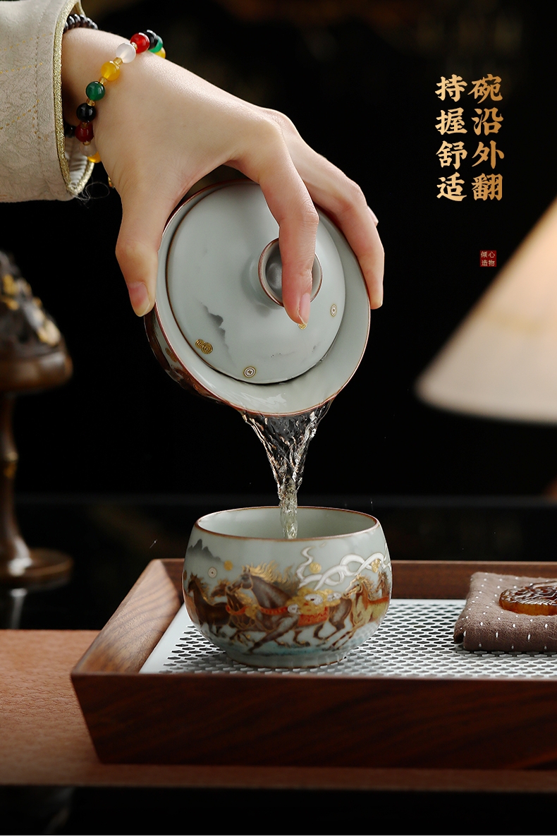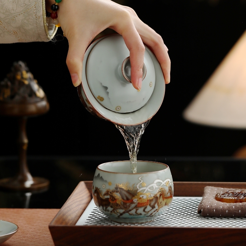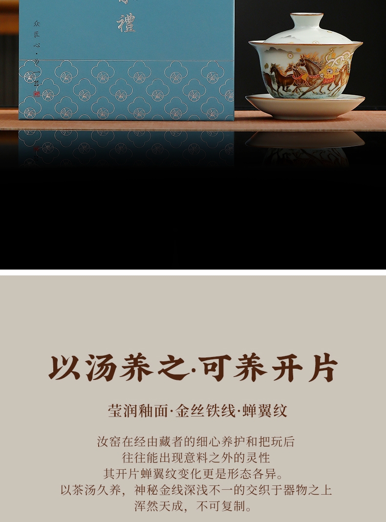 釉如凝脂,器若天成;八骏奔腾,气韵纵横;汝窑 · 八骏图,宋韵风华与千年马魂的完美交融;开门红马上有钱
