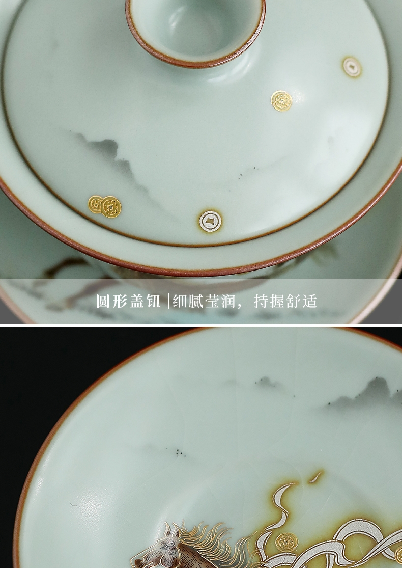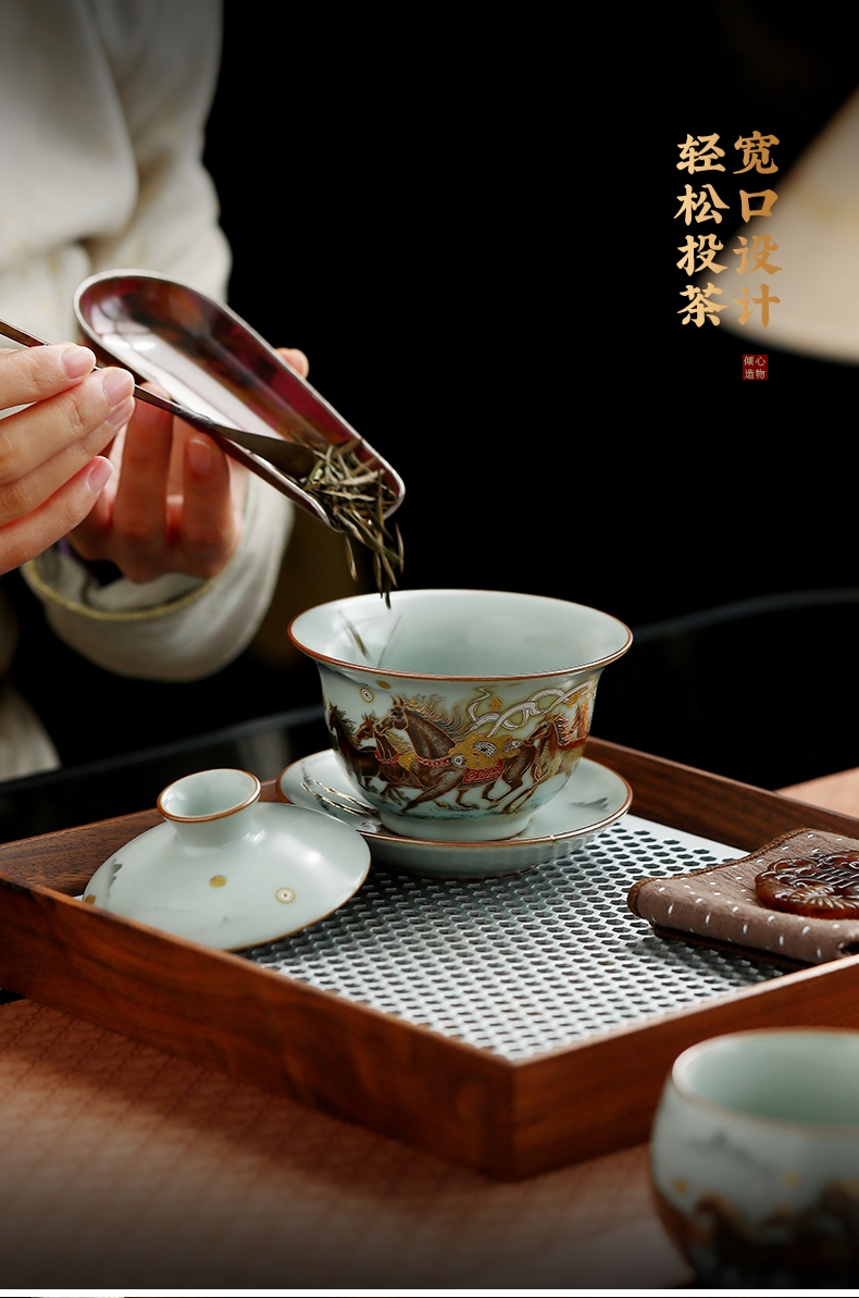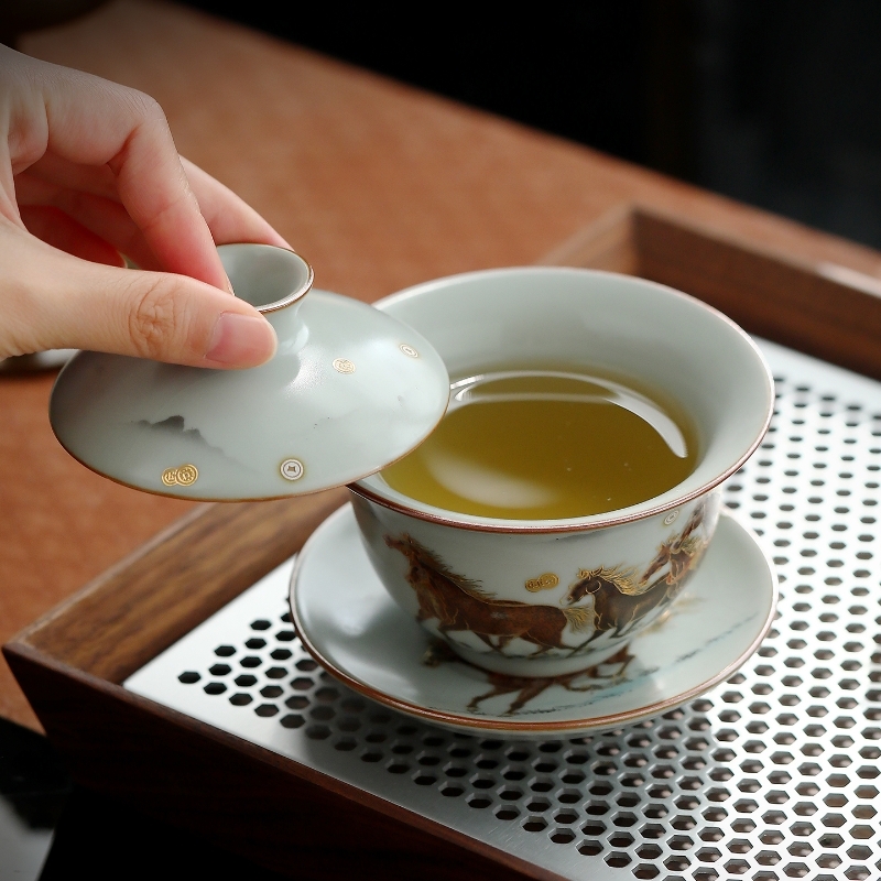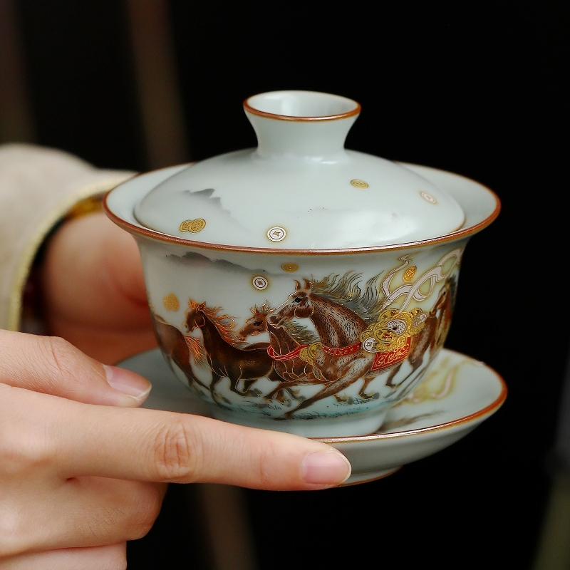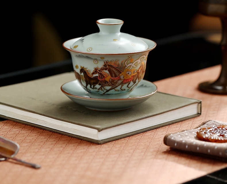釉如凝脂,器若天成;八骏奔腾,气韵纵横;汝窑 · 八骏图,宋韵风华与千年马魂的完美交融;开门红马上有钱