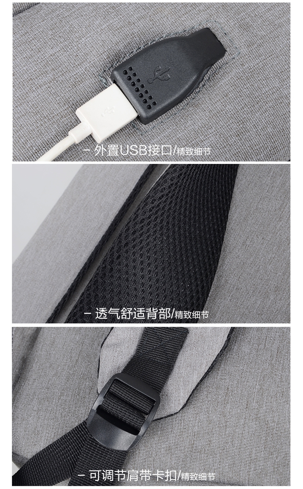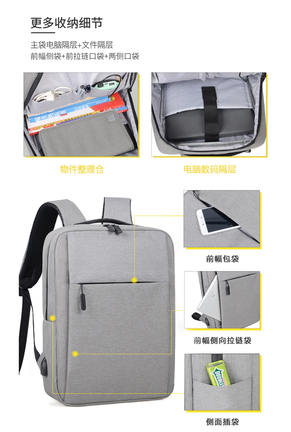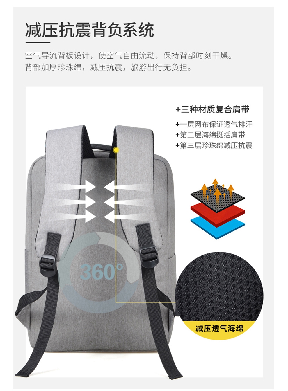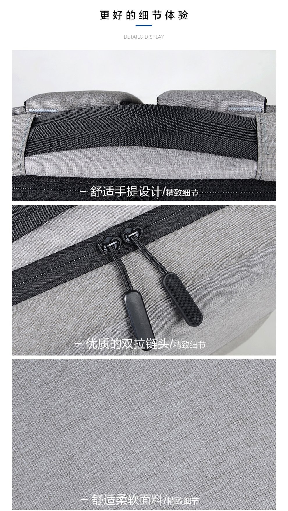 多隔层设计 大容量收纳 多隔层设计 大容量收纳;采用升级款面料,防刮耐磨,减震抗压的背负式设计;让我们出行更加轻盈自在,无论通勤还是出差都是不错的