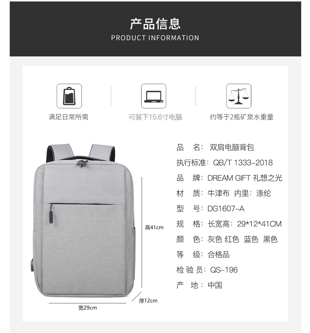 礼想之光 双肩背包电脑包通勤包DG1607-A