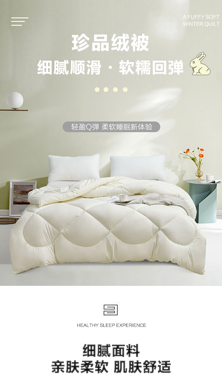 兔绒被,高效保暖 ;软糯回弹;细腻柔滑