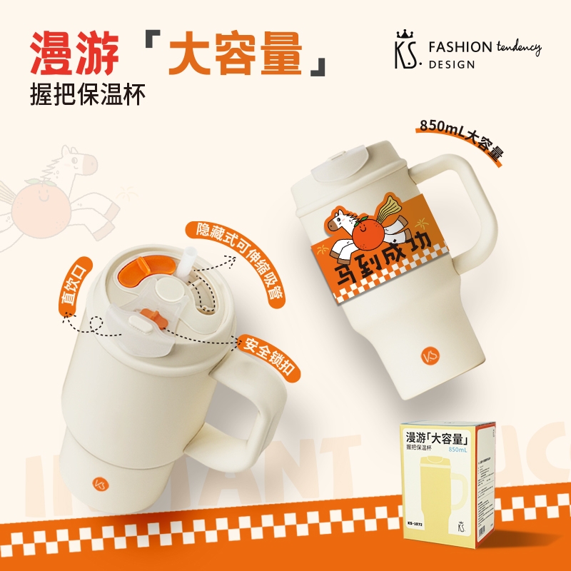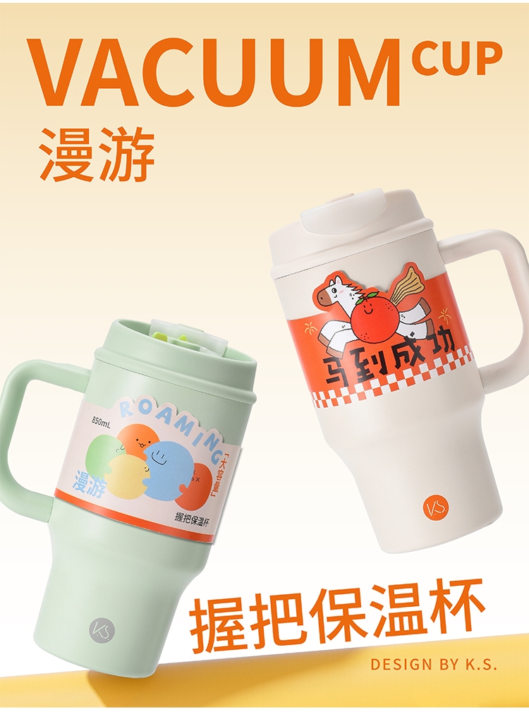 材质:把手杯/850ML杯身/不锈钢(SUS304) 外盖/聚丙烯(食品级PP)+ABS/吸管密封圈/硅橡胶 U型枕:20*28*12CM(94%聚酯纤维,6%氨纶填充物:聚氨酯) 春联/福贴*1副(157G铜版纸) 窗花/pvc10丝带纸140G静电膜23.5*23.5cm
