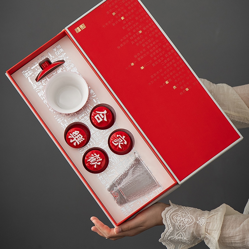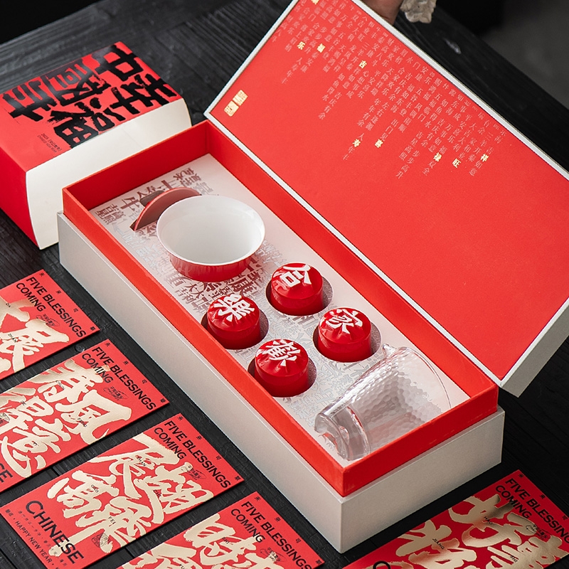 配置清单:配置:汉字杯*4(吉祥团圆) 旭日东升壶*1 锤纹玻璃公道*1 (赠送红包袋)