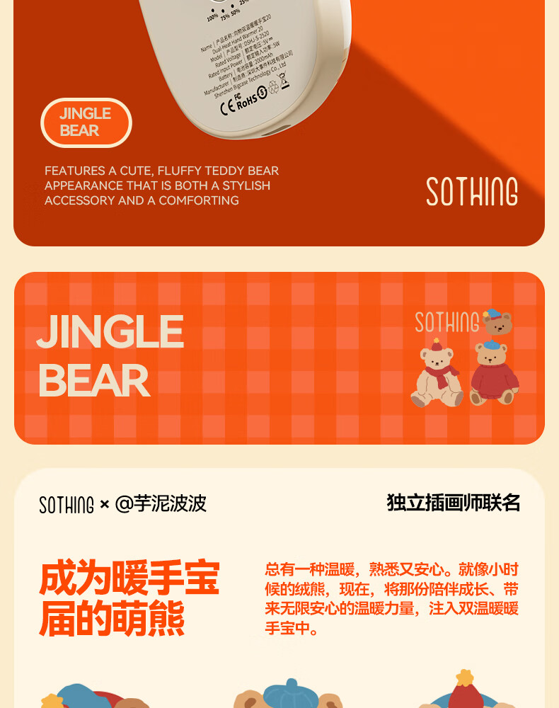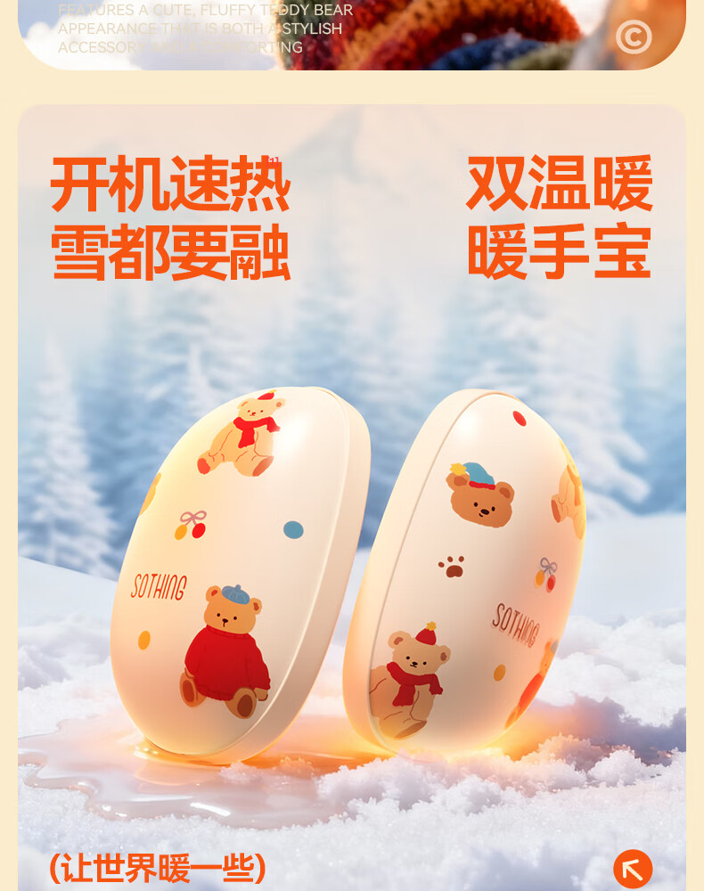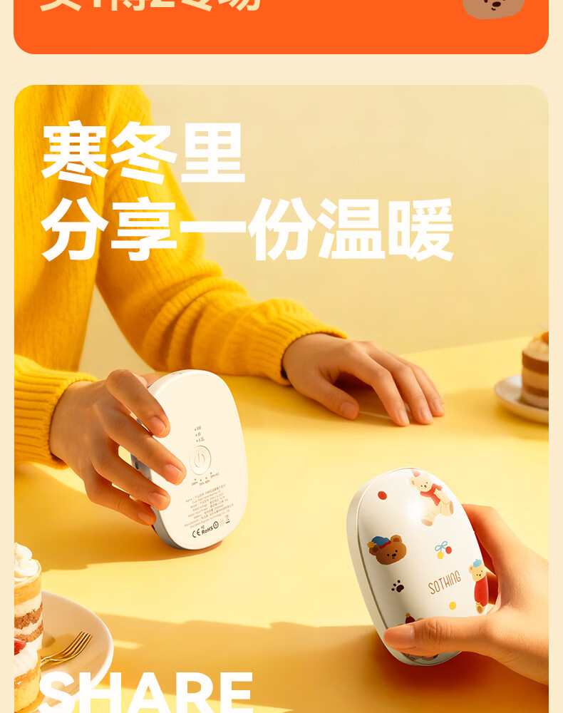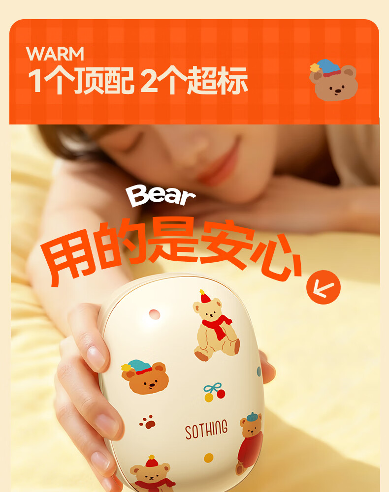 联合著名插画师定制的卡通图案,软萌可爱;椭圆形状更容易贴合手掌;聚热效果更 2000mAh*2的电池容量