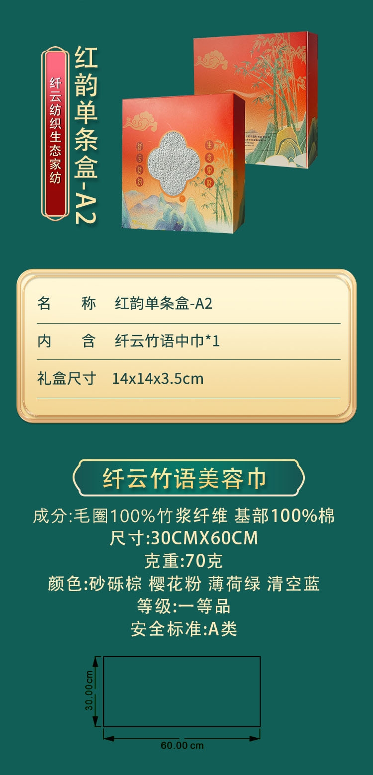 孚日 红韵礼盒竹纤维中巾单条装A2