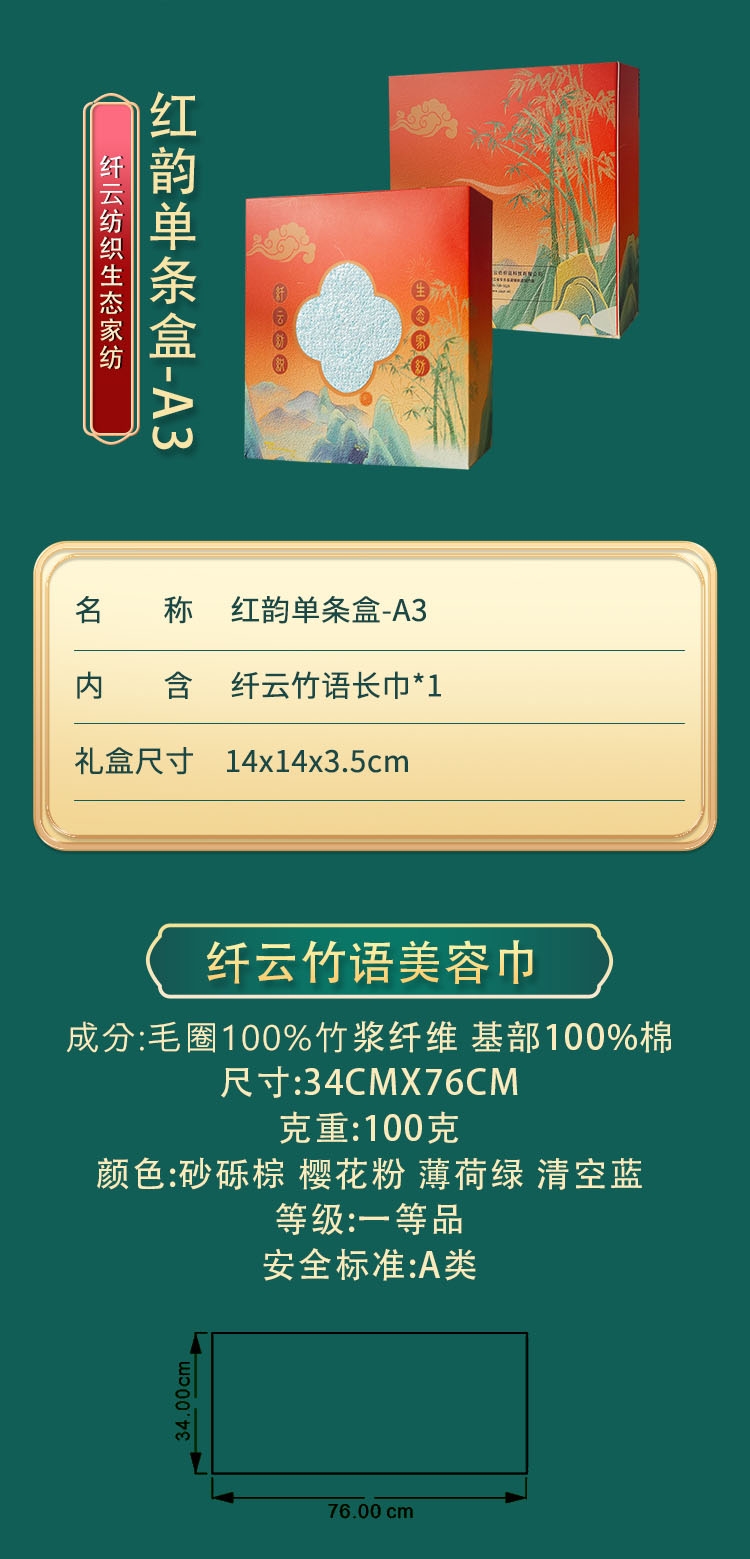 孚日 红韵礼盒竹纤维长巾单条装A3