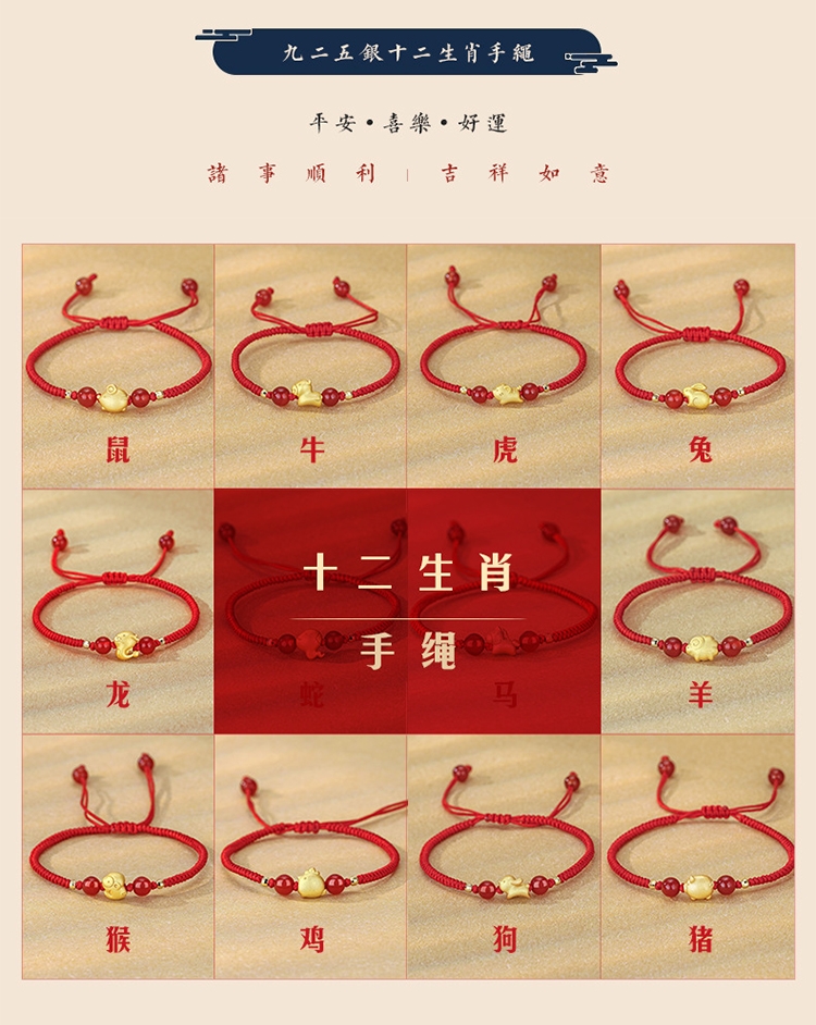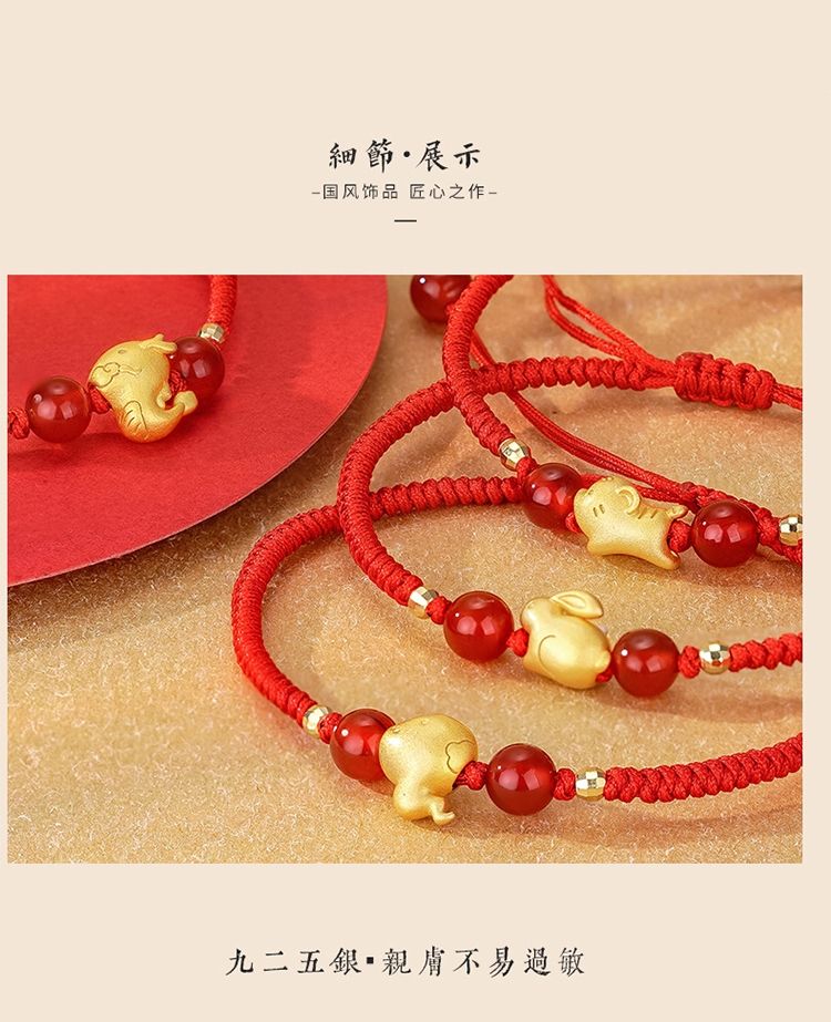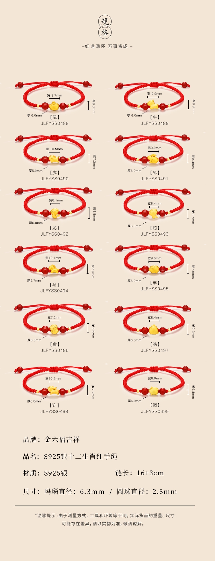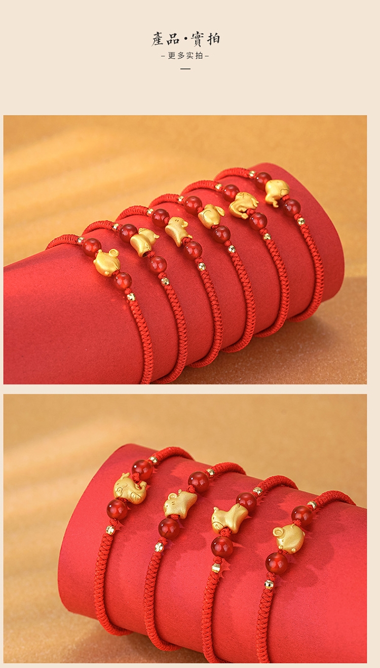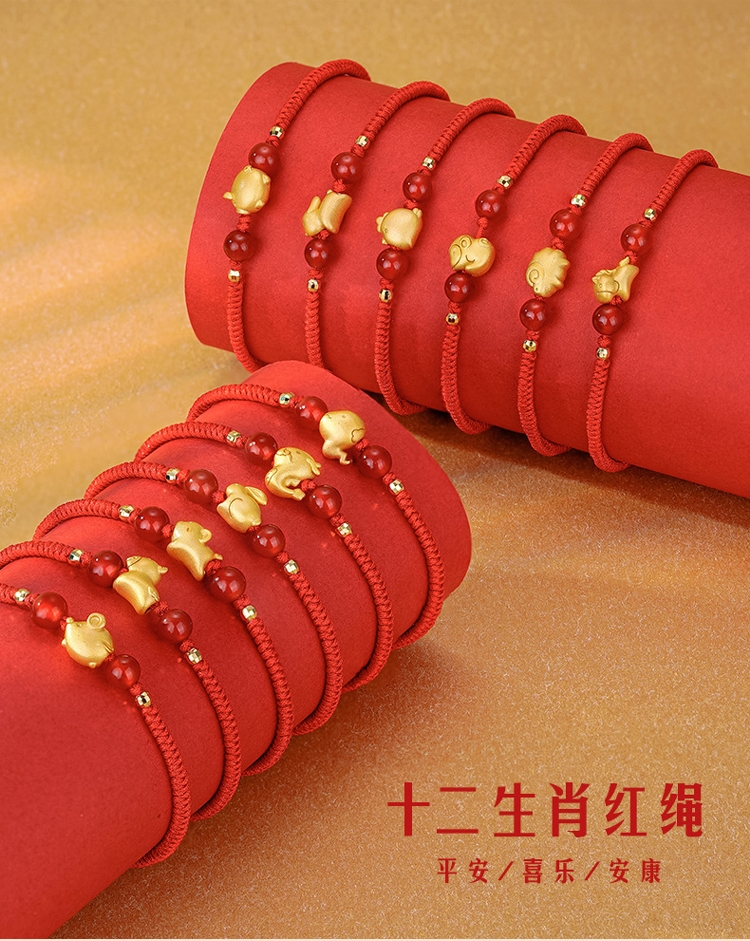 金六福吉祥 十二生肖红手绳马JLFYSS0494