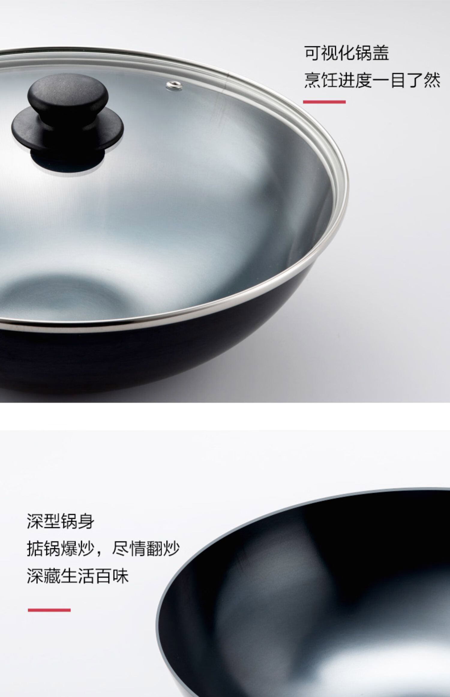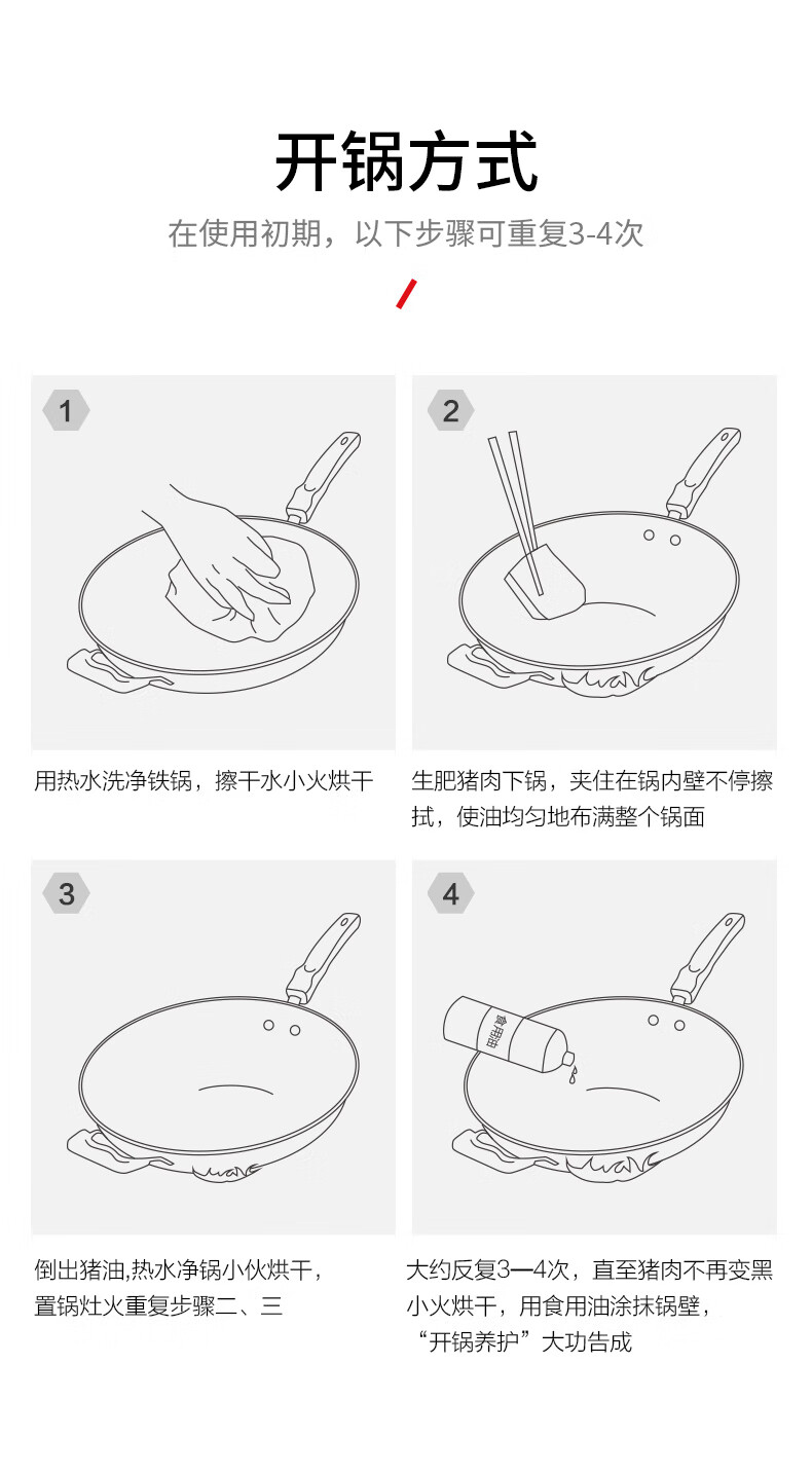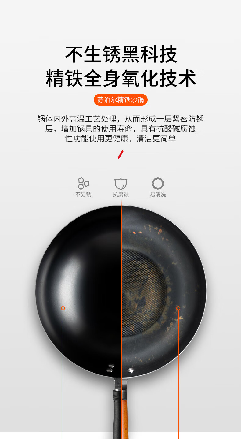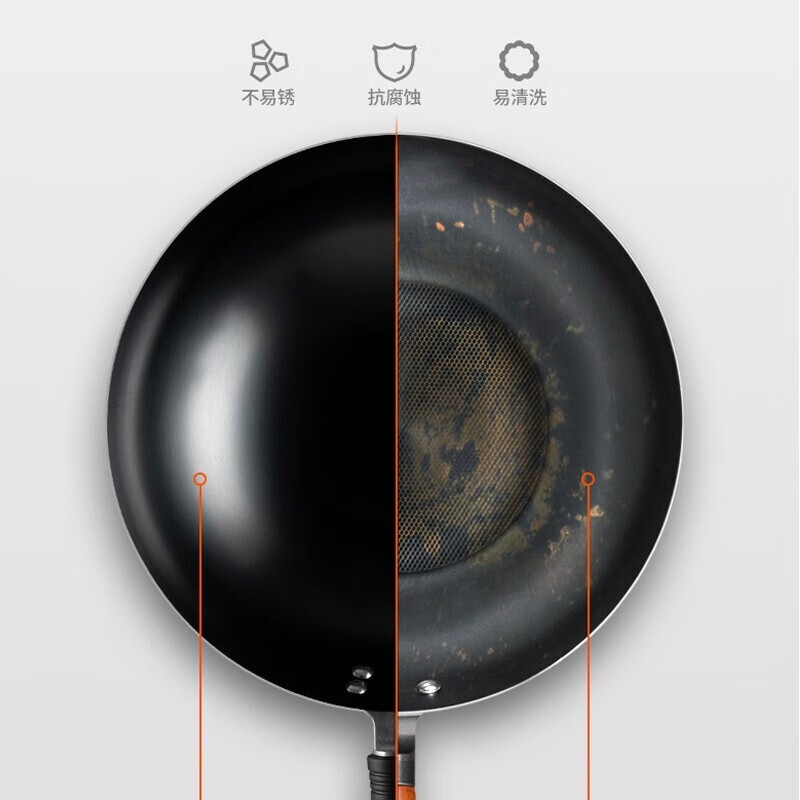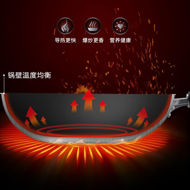 燃气专用节能省时;锅体一次成型,高压重锤压制,持久耐用;精铁锻造,快速传热