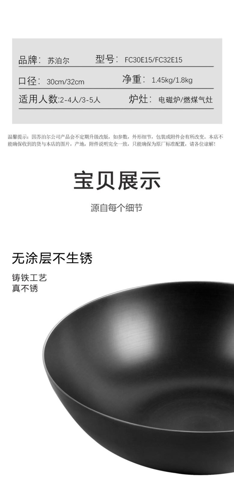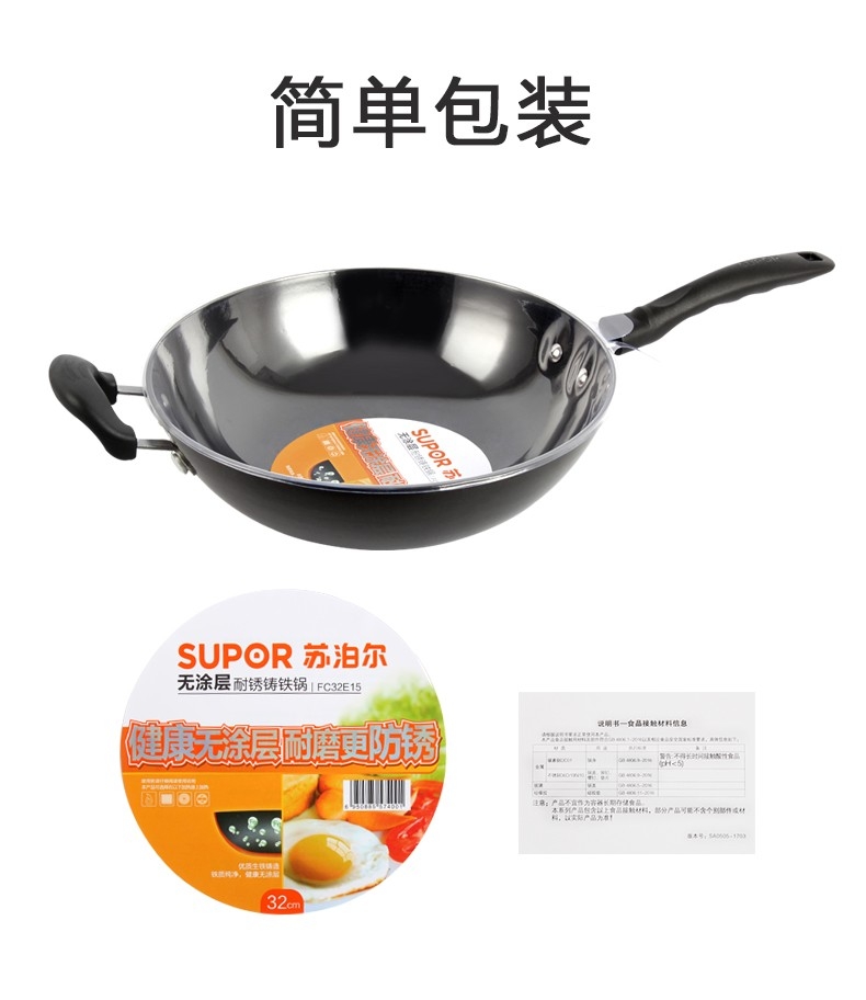 苏泊尔 32cm无涂层耐锈铸铁锅FC32E15