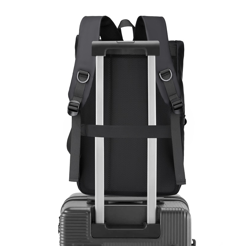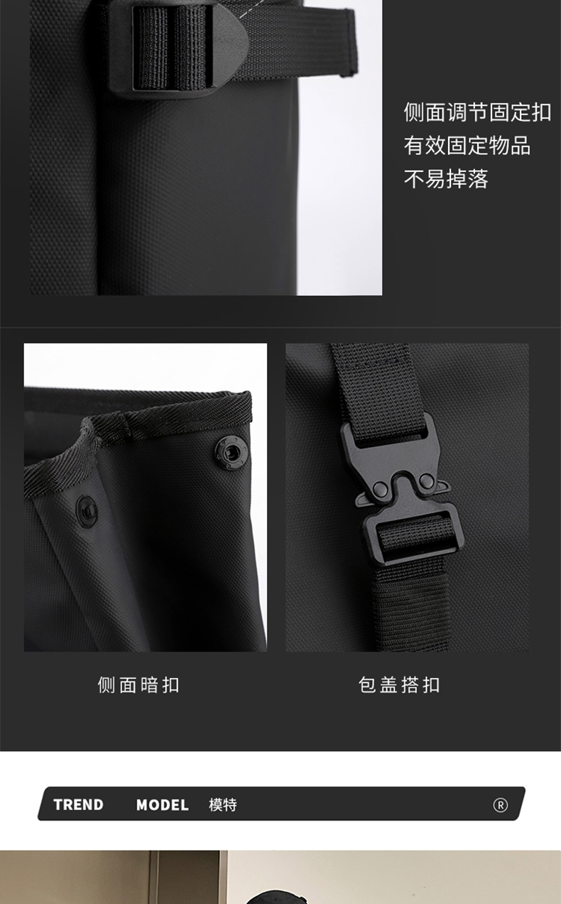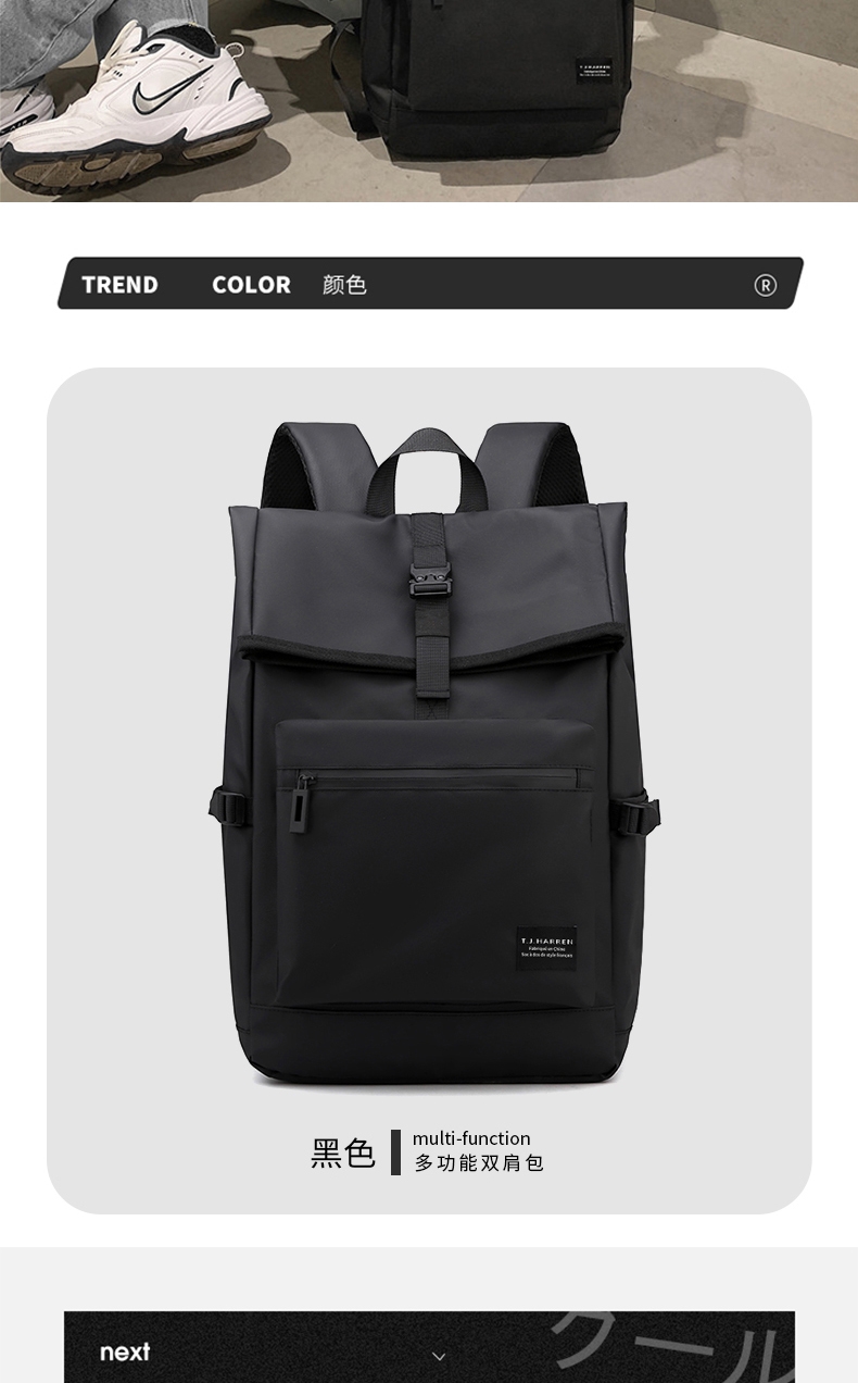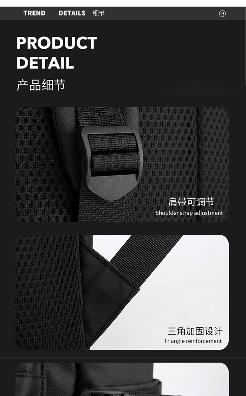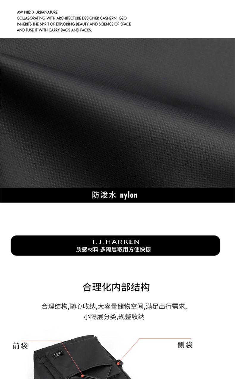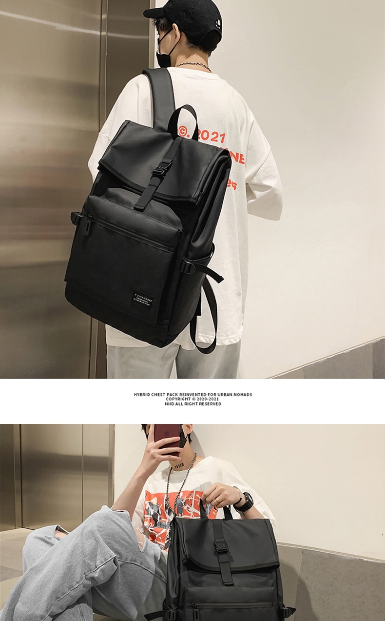 新款多功能设计,时尚大方,旅行休闲商务三用;柔性防水皮膜面料,一擦即干,轻松打理;独立加棉加厚电脑隔层袋,可放置15.6寸电脑