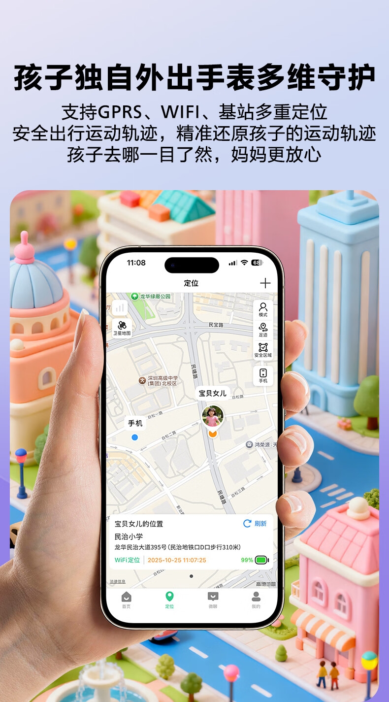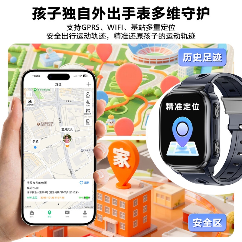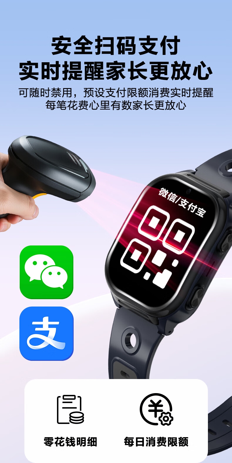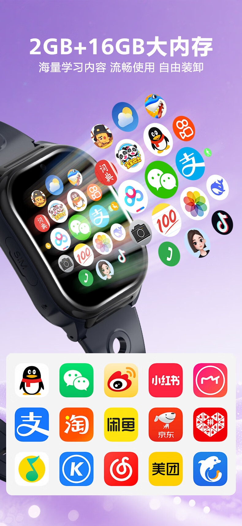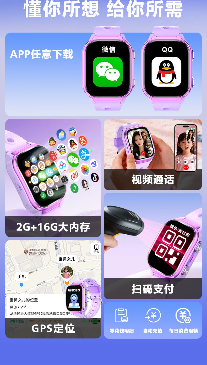 2G+16G大内存,旗舰安卓系统,软件随心下;微信/支付宝双向支付,微信/QQ/儿童版微信交友聊;AI智能定位(支持GPS++WIFI+LBS等定位