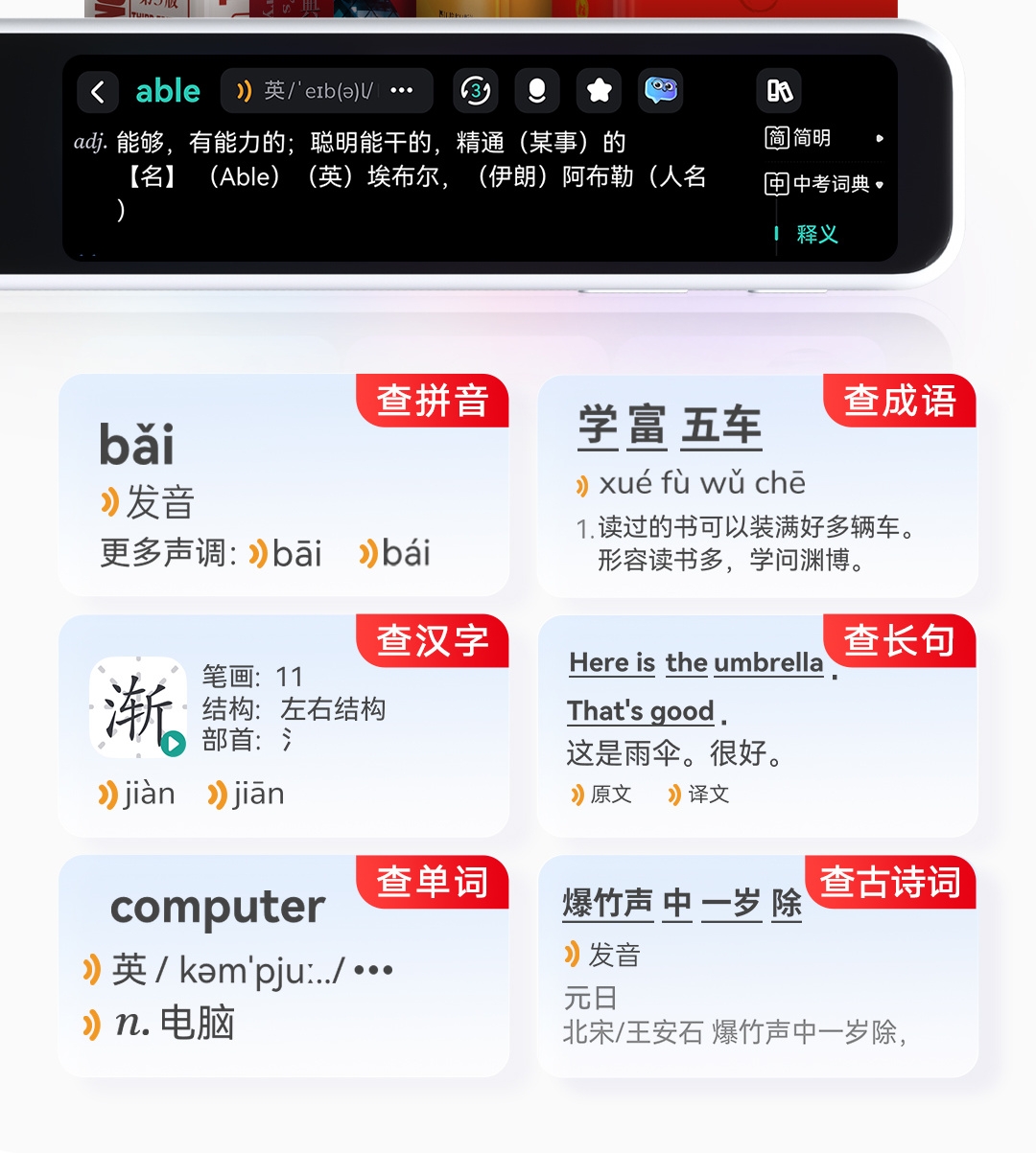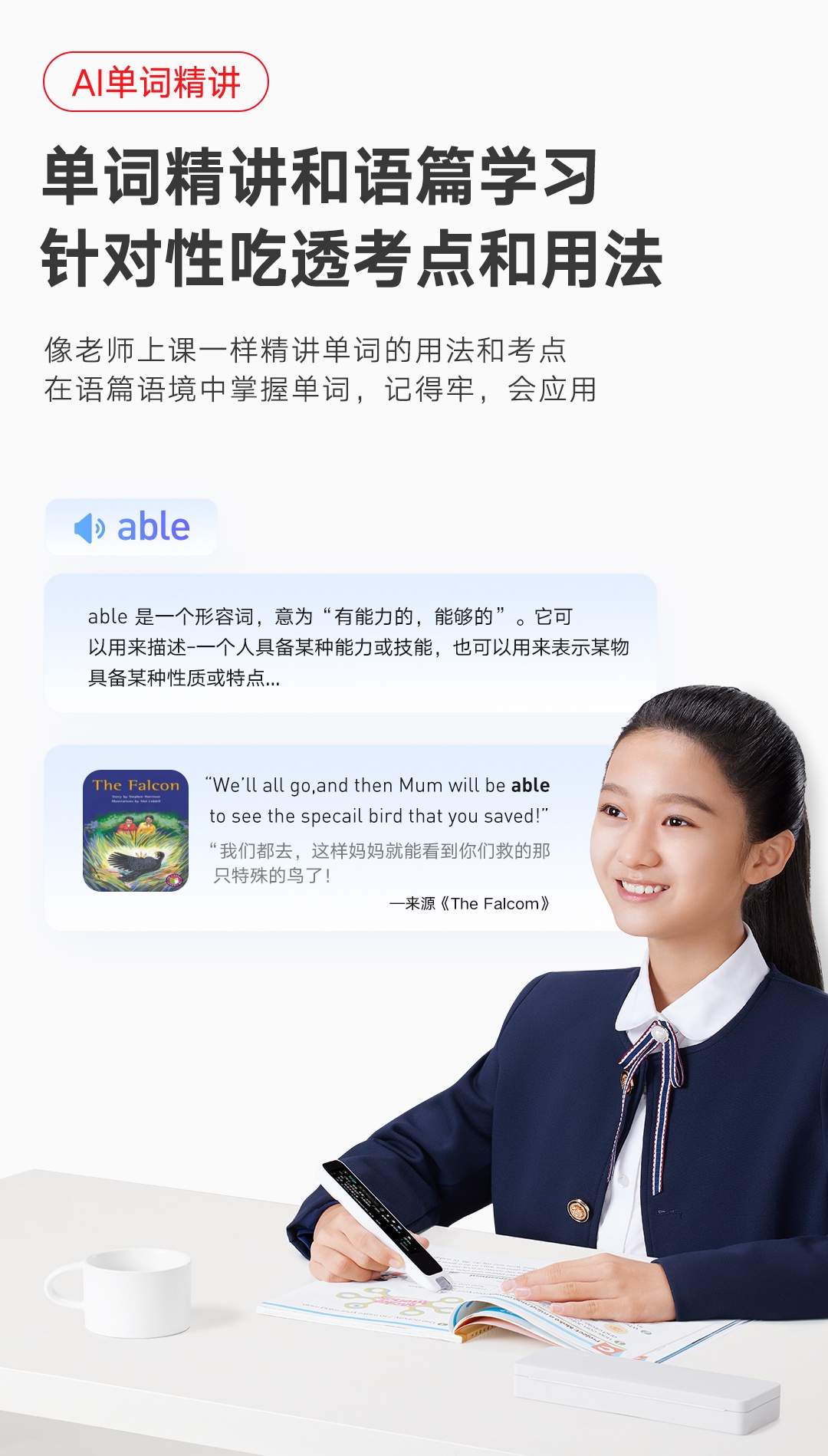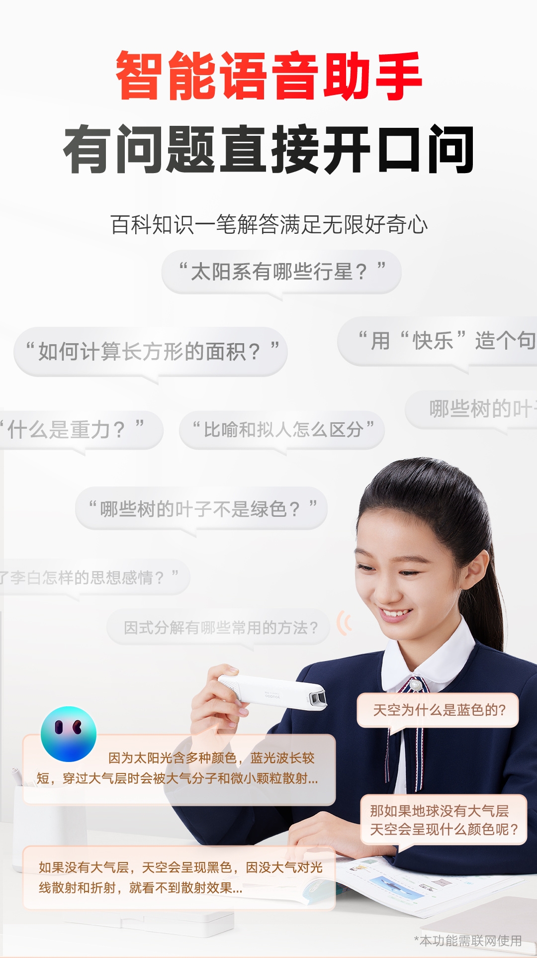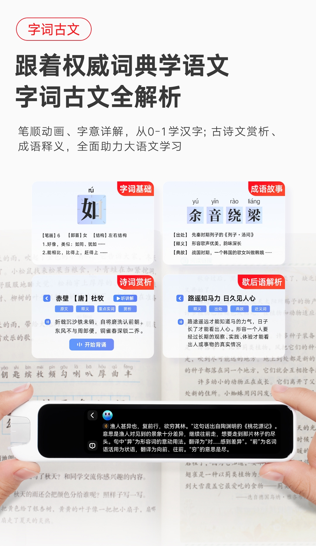 一体式机身,轻巧便携,防摔耐用;超宽笔头,支持初号字体,绘本扫描体验更优;安全环保材质,孩子用着更安心