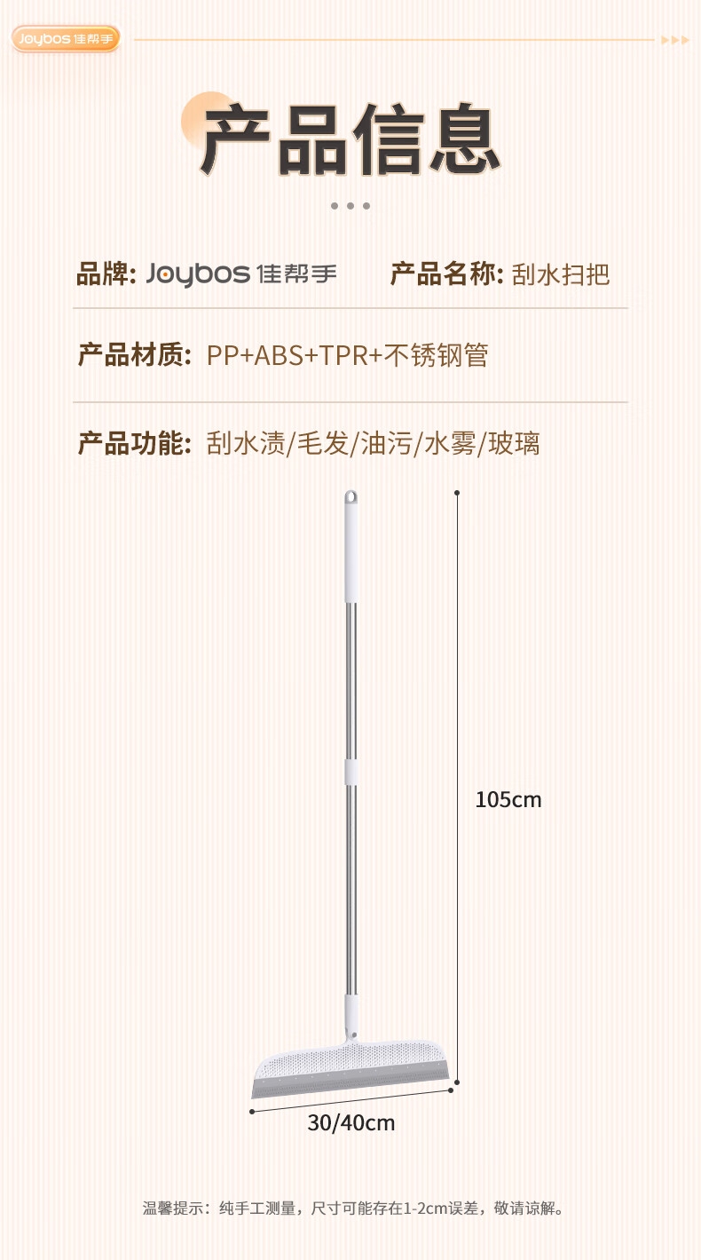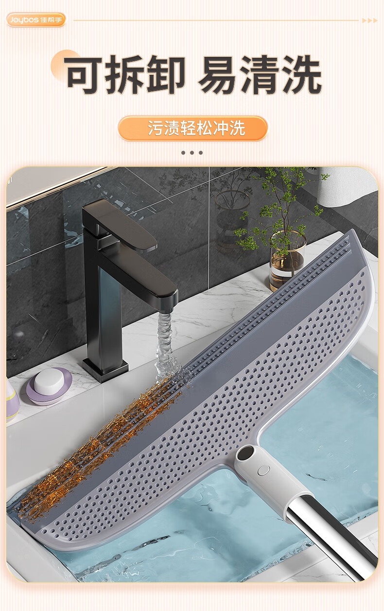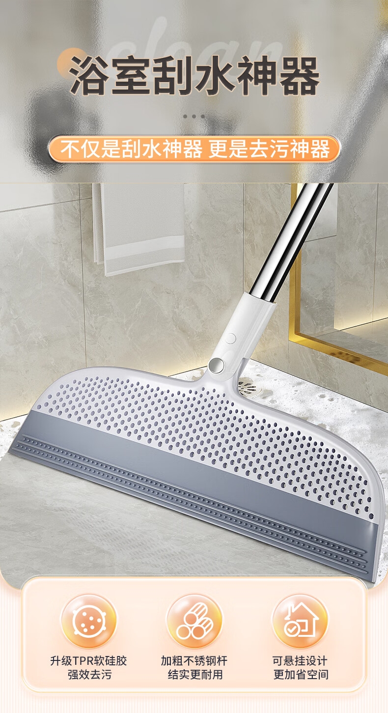 升级TPR软硅胶,强效去污;加粗不锈钢杆,结实更耐用;可悬挂设计,更加省空间