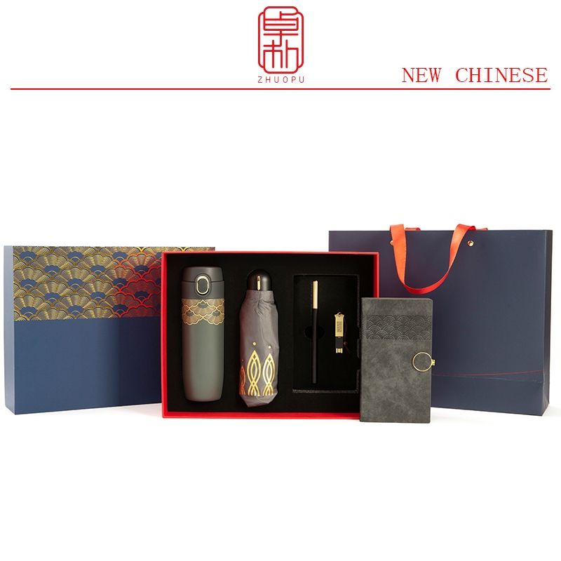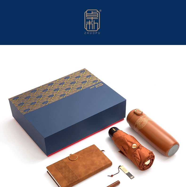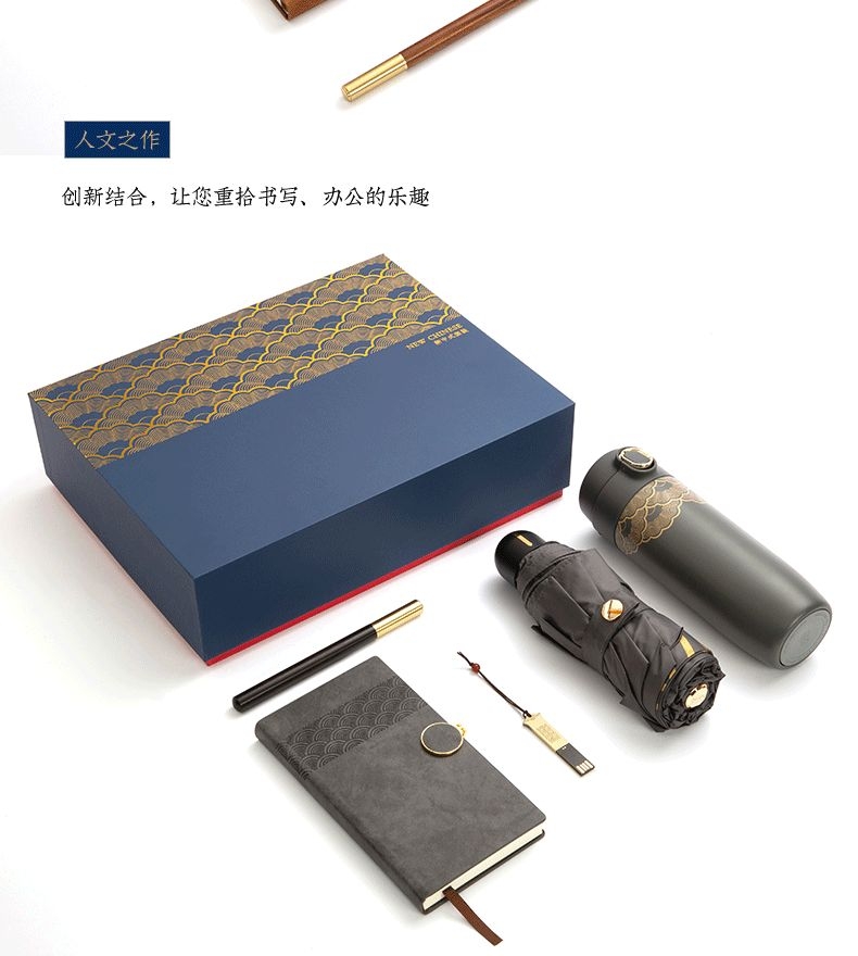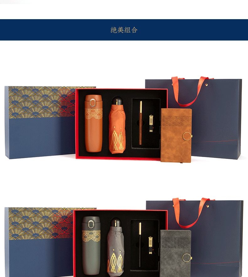 配置:350ML保温杯+晴雨伞+记事本+红木笔+U盘