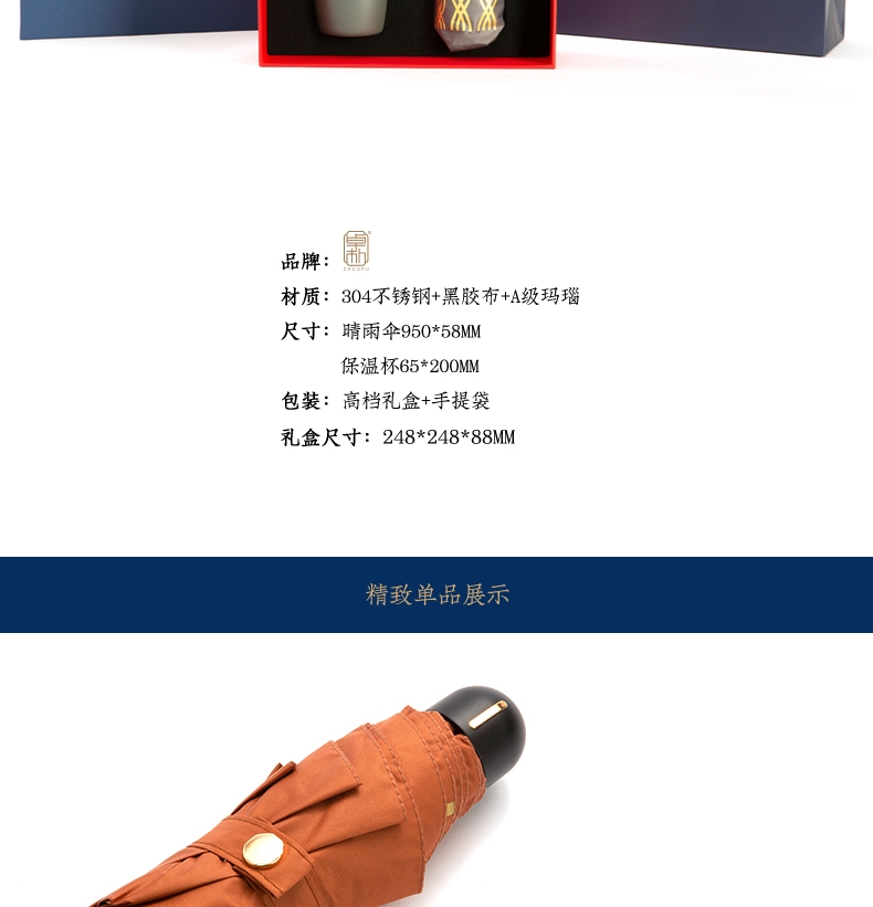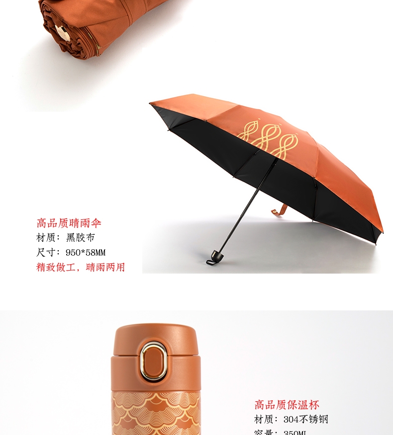 尺寸:晴雨伞950*58mm 保温杯65*200mm