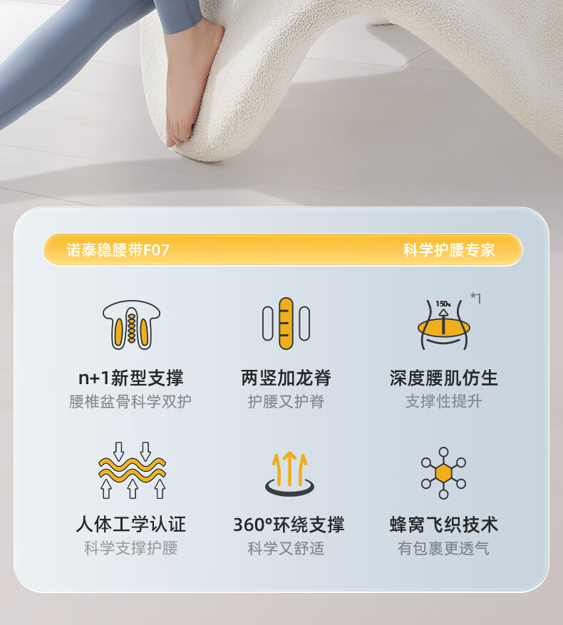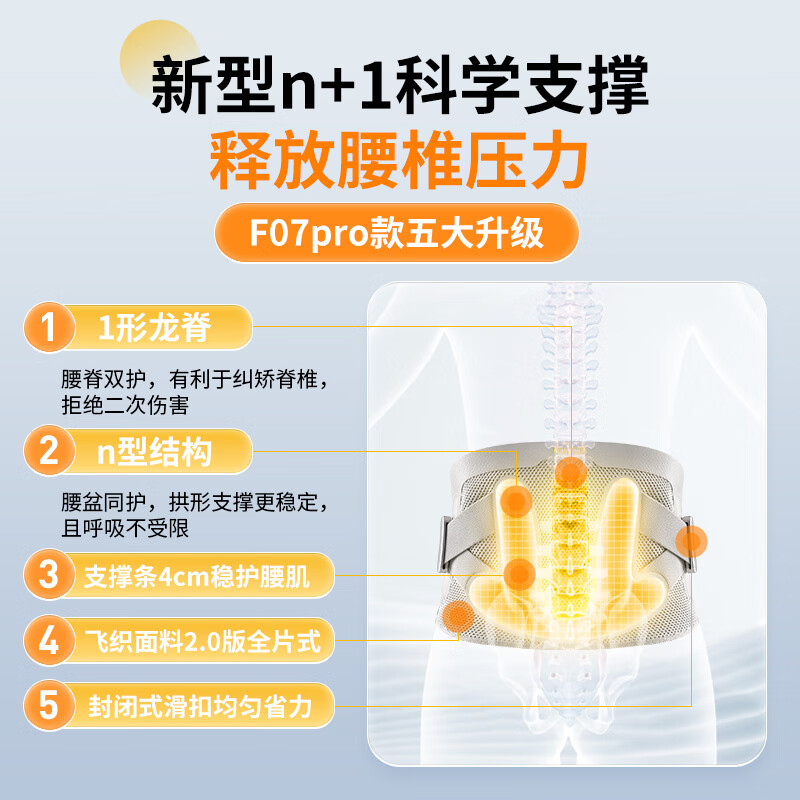 双倍支撑,更强护腰,不痛不累。;精准顶腰,酸痛全消,更贴合更有效;全片4D飞织面料,更包裹更透气,三层热压一体成型;超高颜值,外穿尽显时尚,低调高级,时尚百搭单品;26°曲度仿生,精准贴合,支撑腰椎