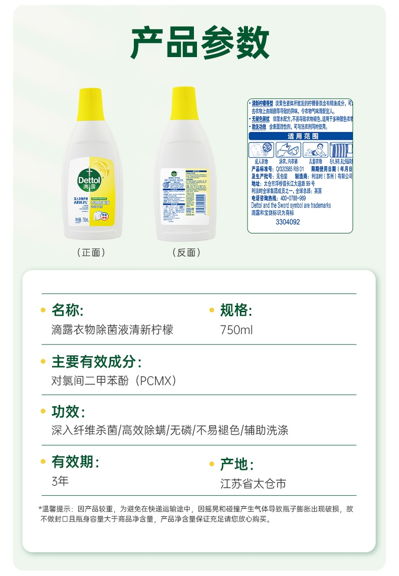 配置清单:滴露衣物除菌液清新柠檬750ml