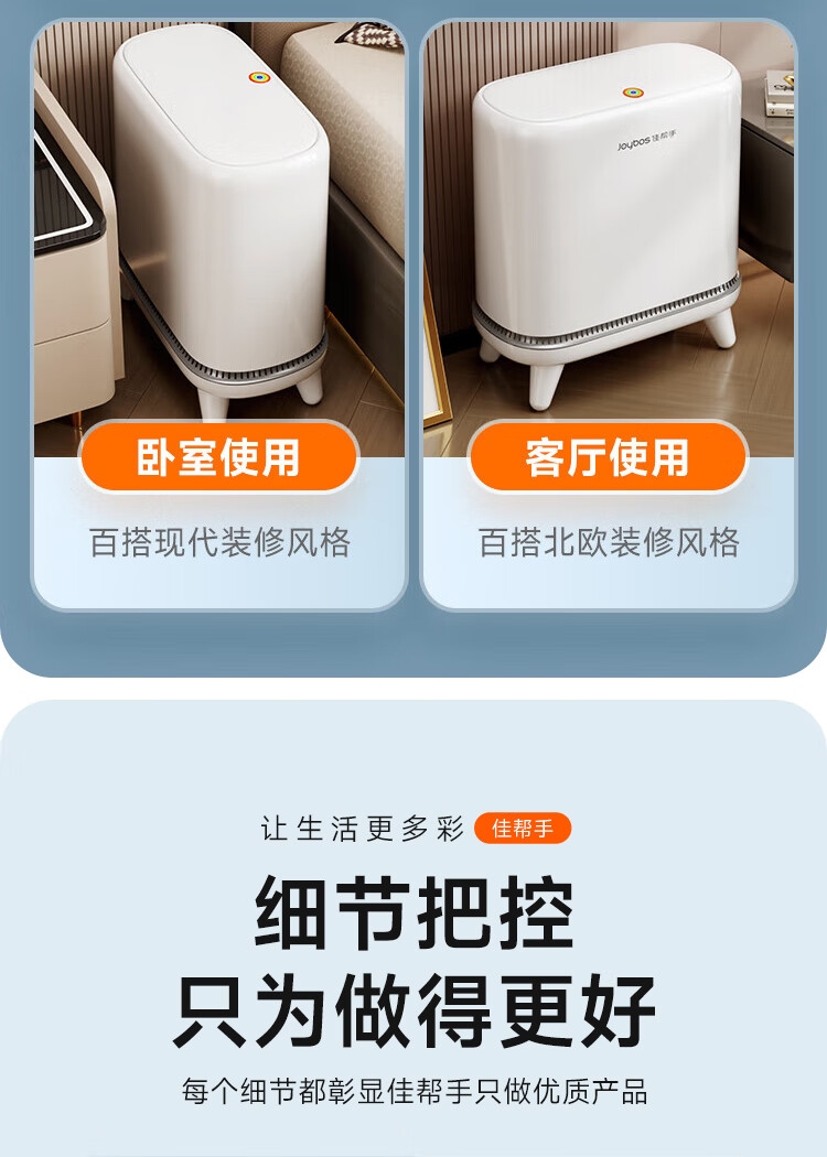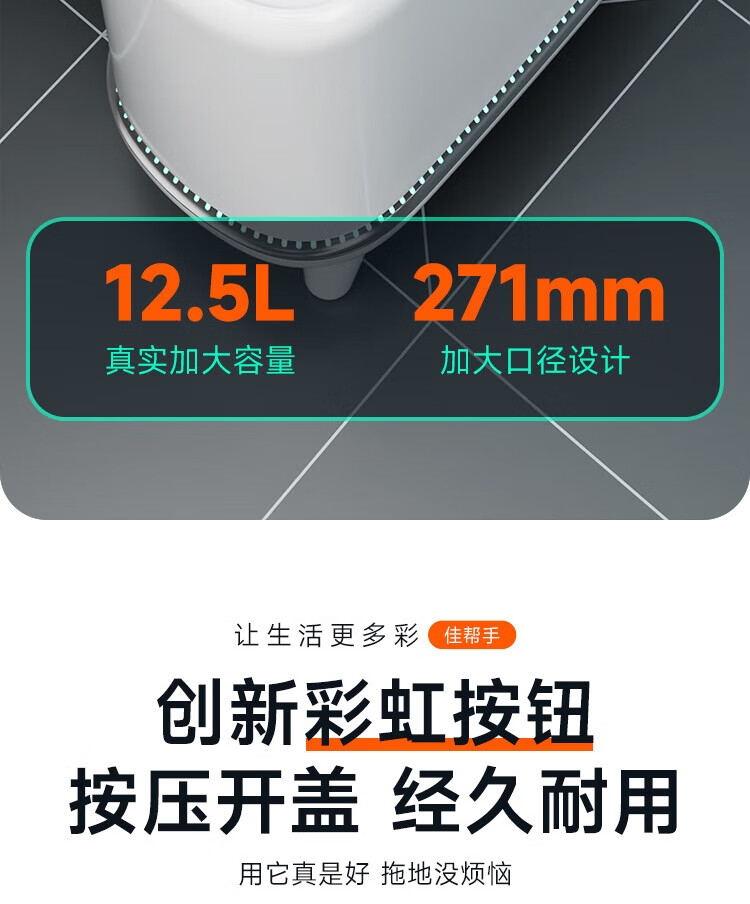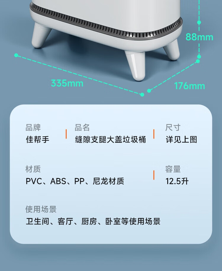 佳帮手 夹缝支腿大盖气压垃圾桶佳灰JBS-QYLJT-CFD3-JGY