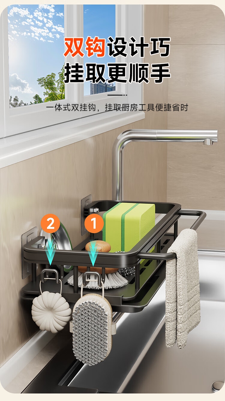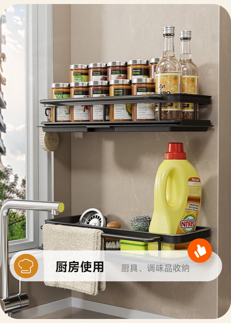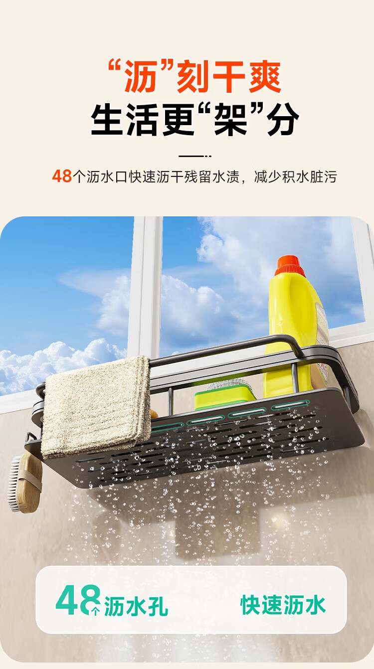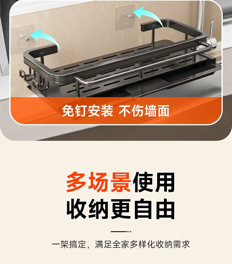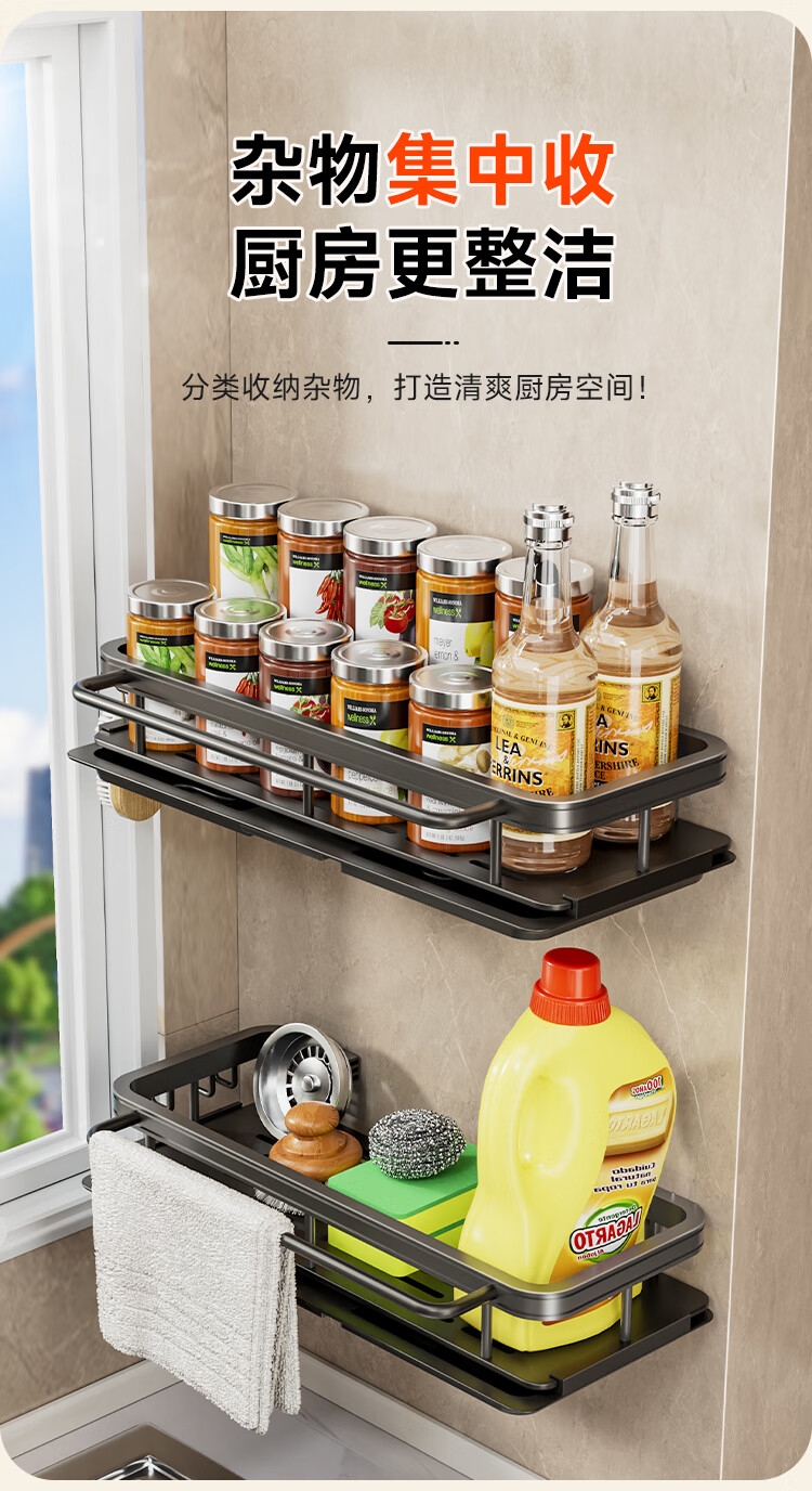 杂物集中收,厨房更整洁;“沥”刻干爽,生活更“架”分;双钩设计巧,挂取更顺手