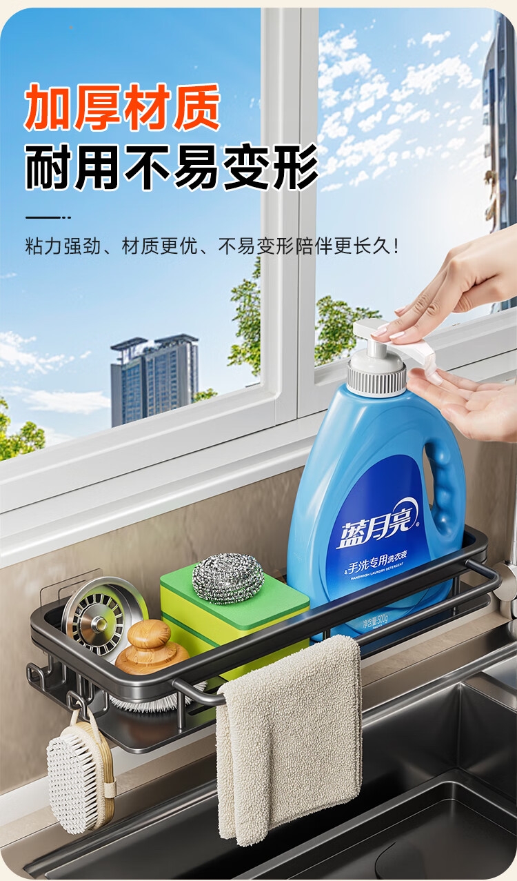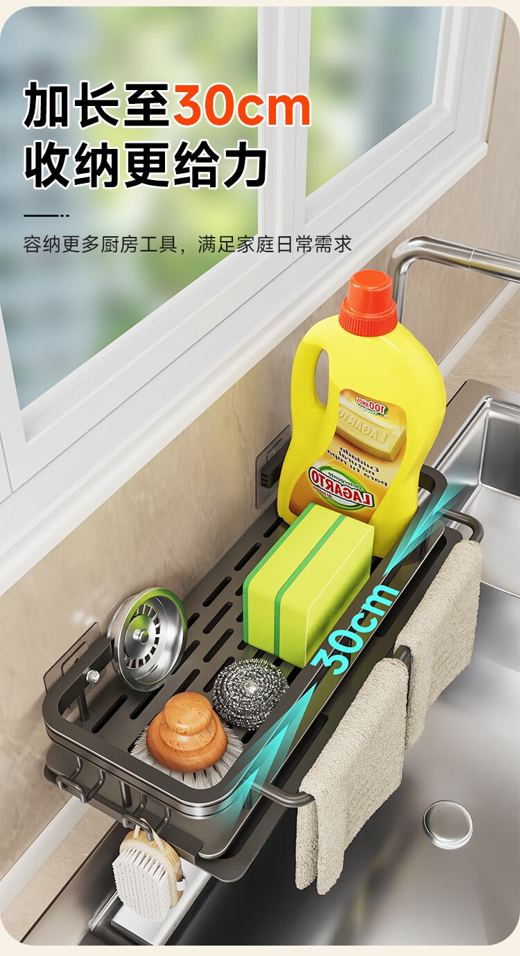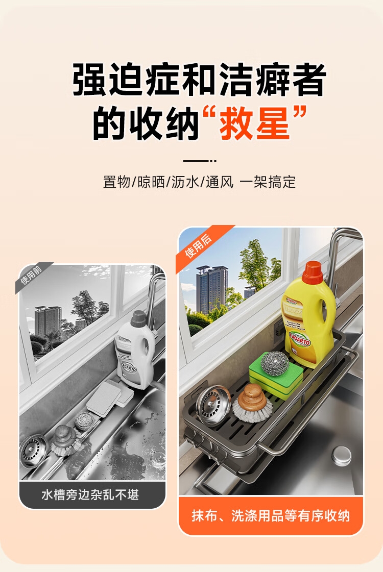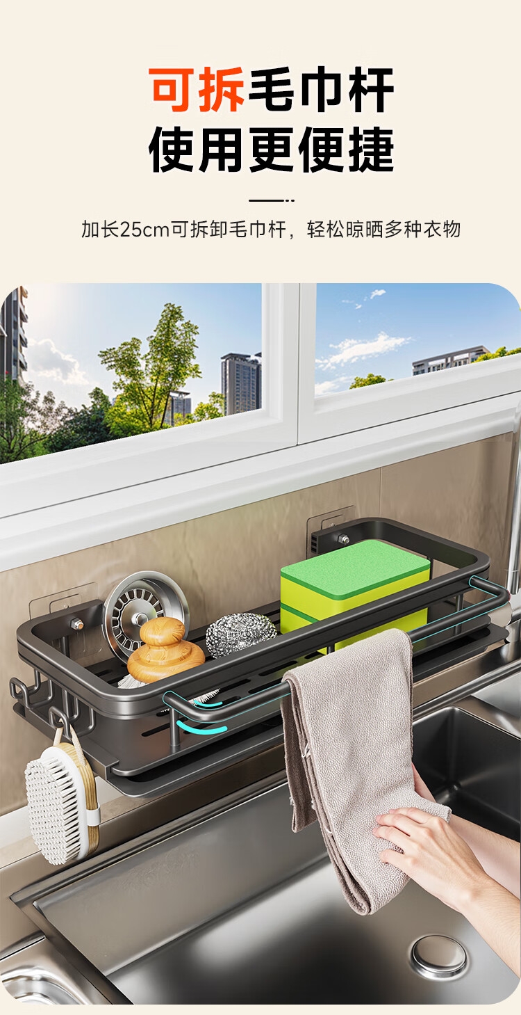 杂物集中收,厨房更整洁;“沥”刻干爽,生活更“架”分;双钩设计巧,挂取更顺手