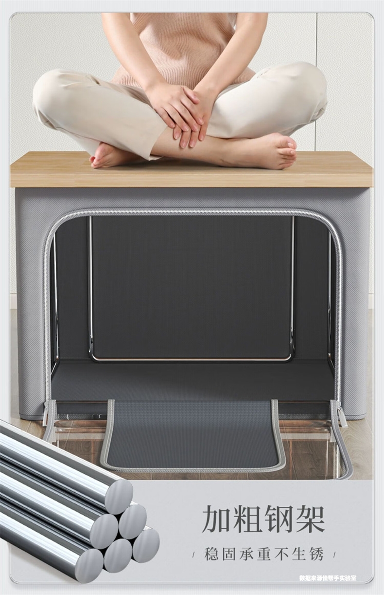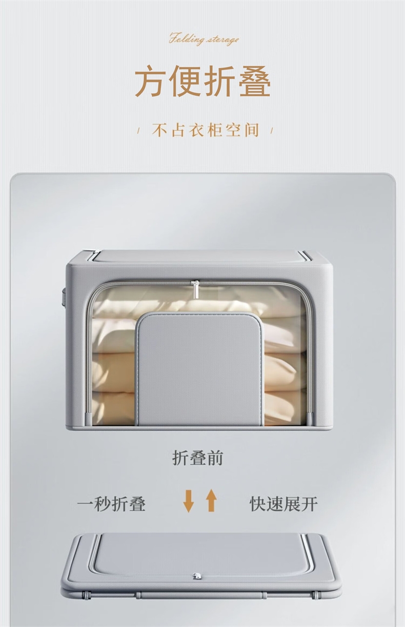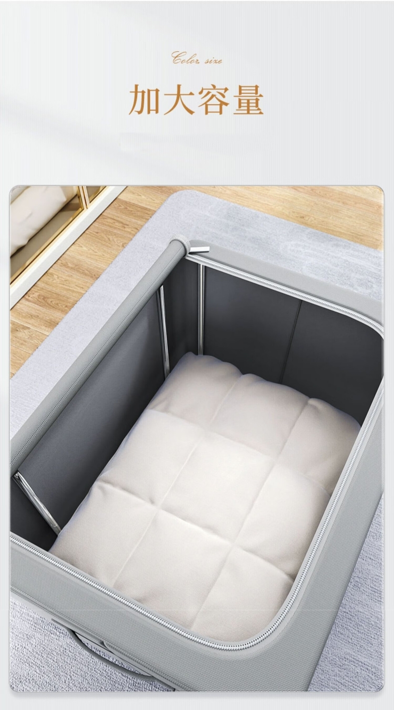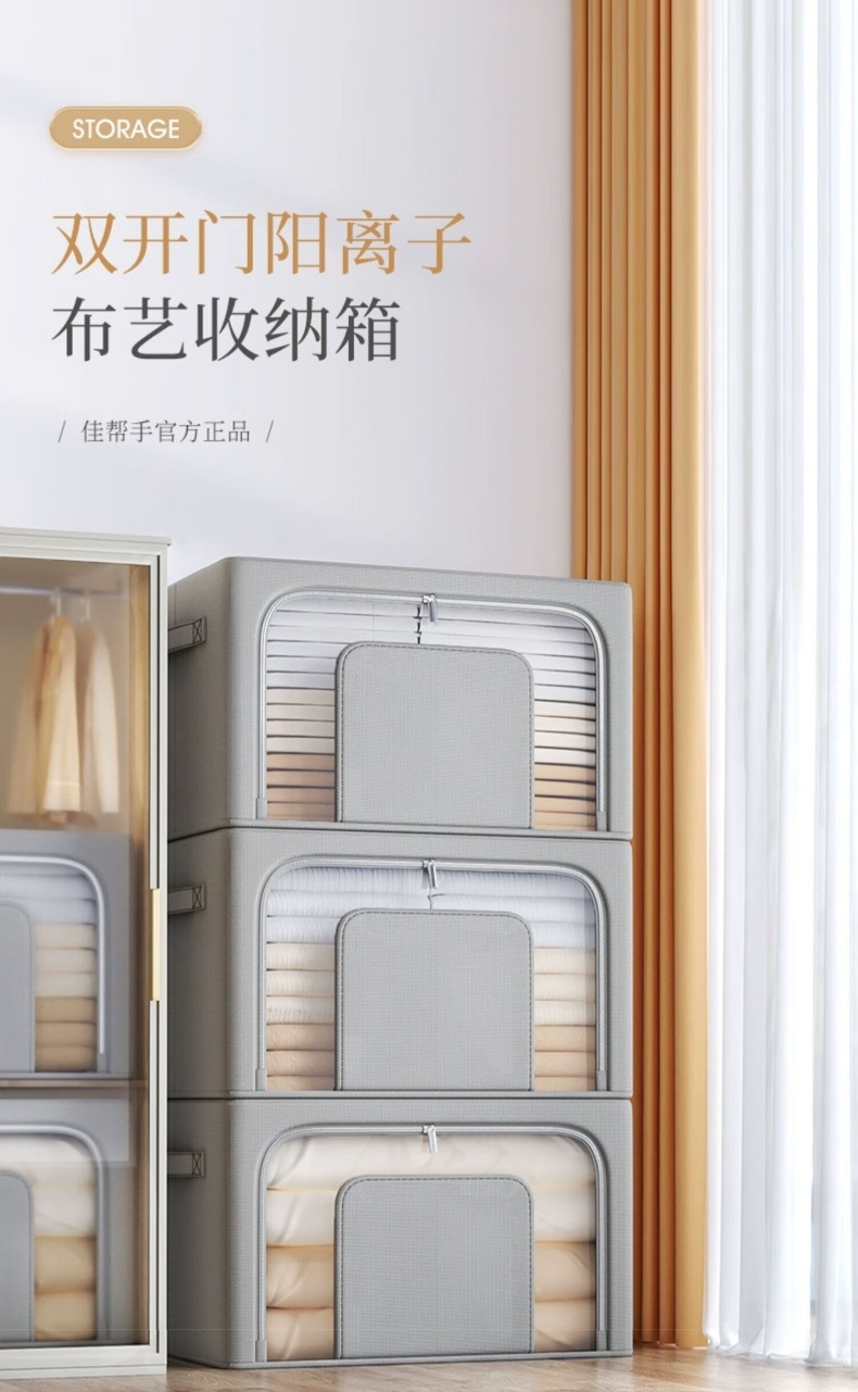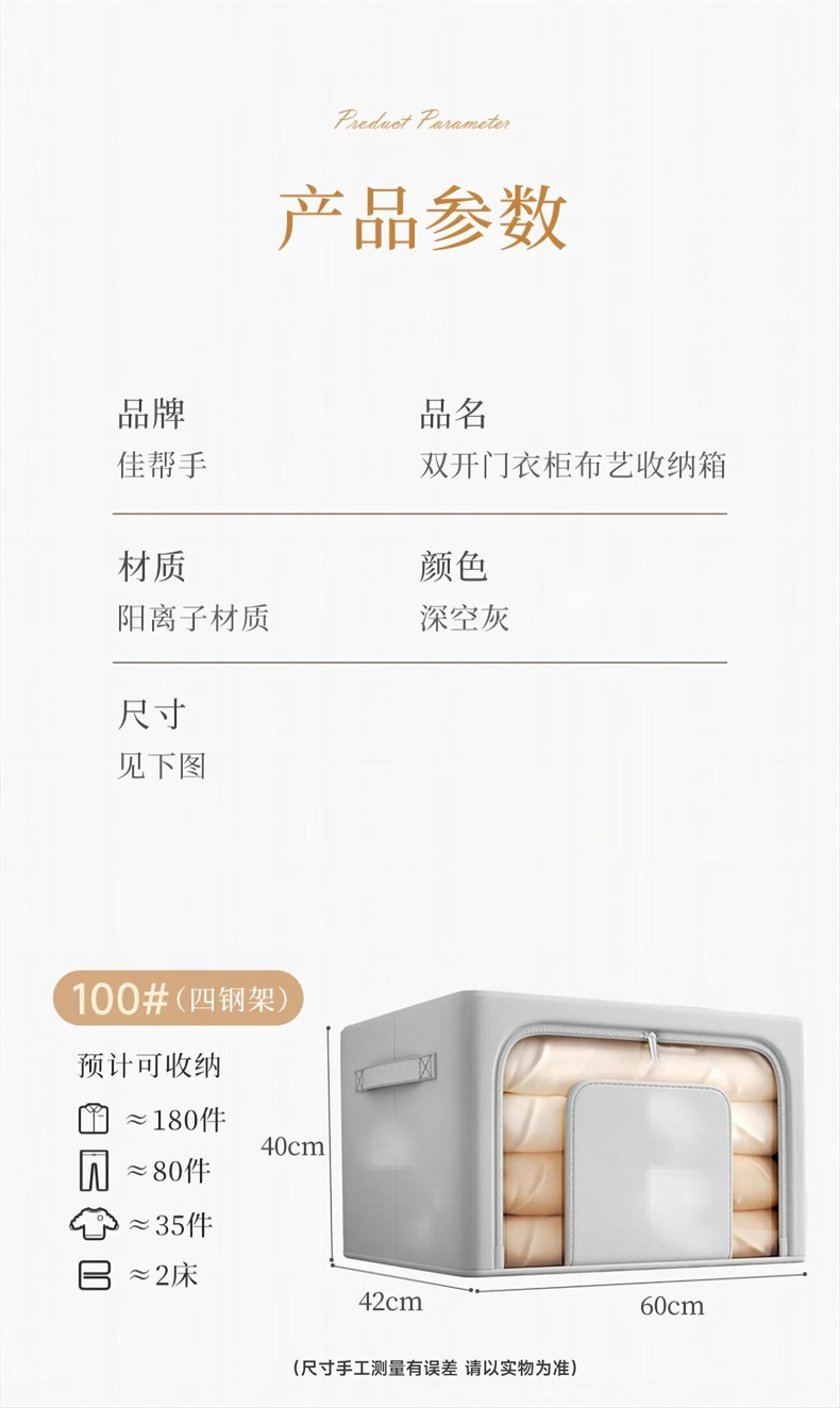 双开门阳离子,布艺收纳箱;方便折叠,不占衣柜空间;加大容量,加粗钢管