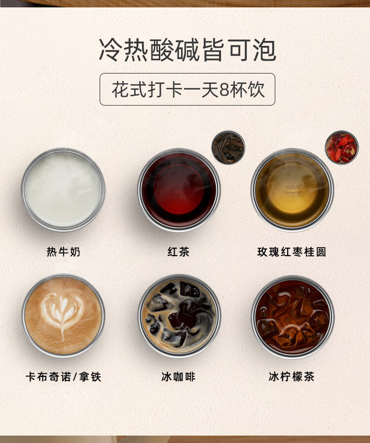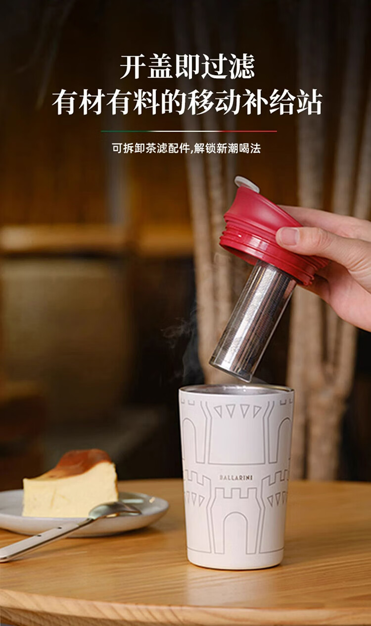 不留渍易清洗,可拆卸茶滤配件,解锁新潮喝法;随身随行稳定不漏水,轻盈易携;造型复古,提杯出行轻便吸睛