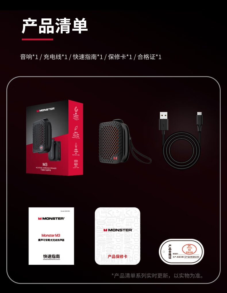 魔声 M3迷你无线蓝牙音箱便携可穿戴MS62106