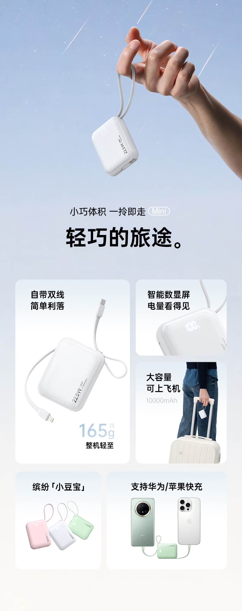 自带双线,超小便携;极致简约,外观精美;国家3C,放心上机