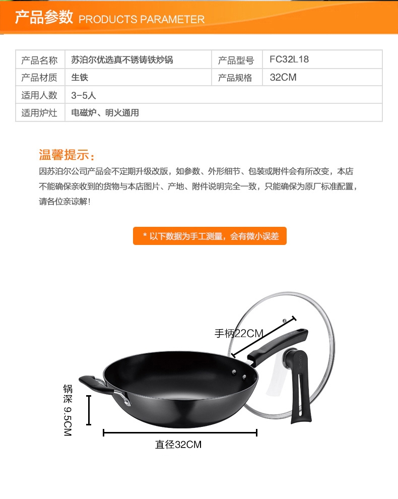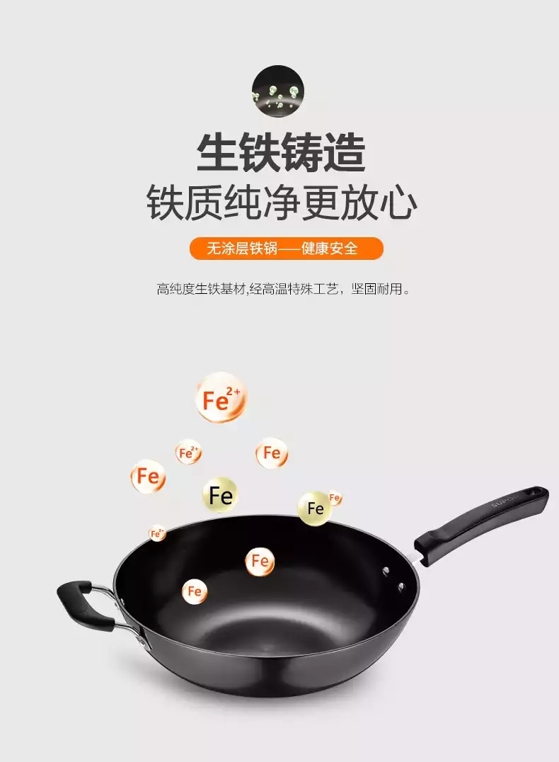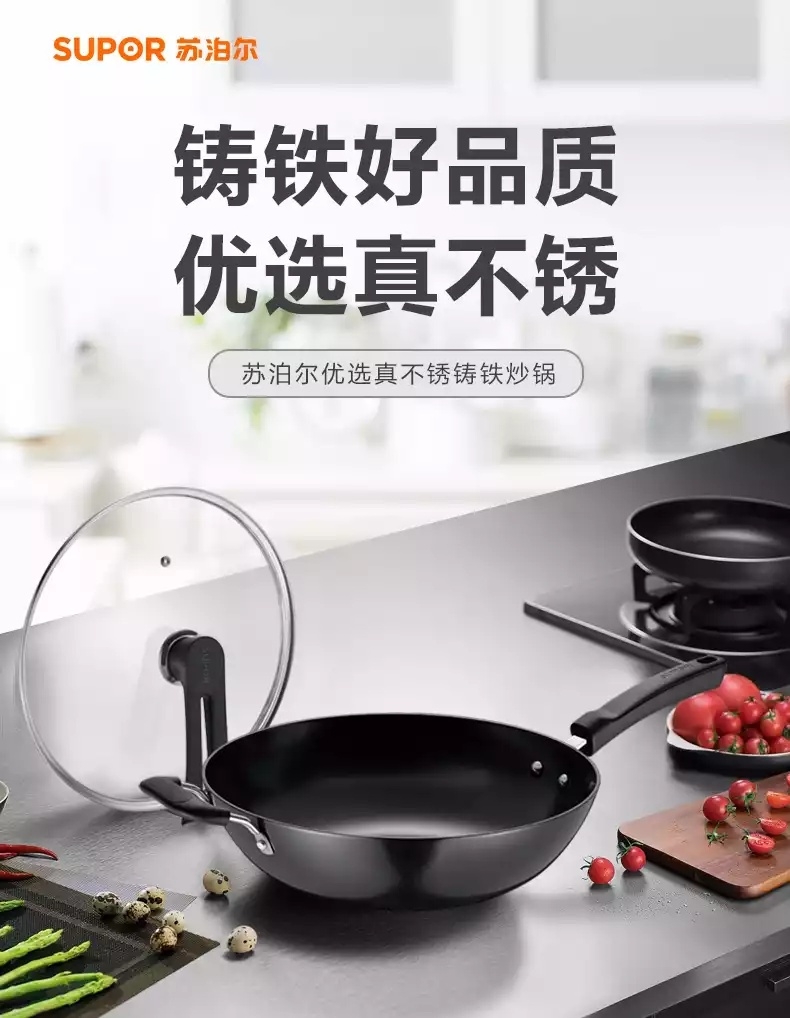 苏泊尔 32cm优选真不锈铸铁炒锅FC32L18