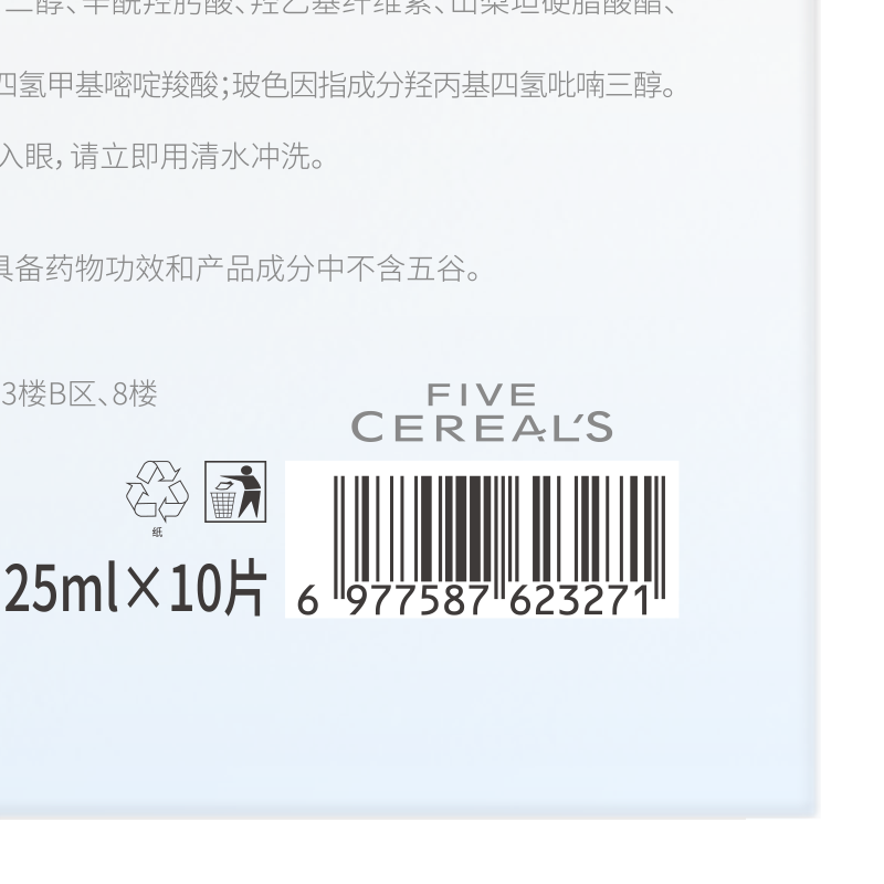 配置清单:韩方五谷三因舒缓抗皱面膜25ml*10(盒装)*1