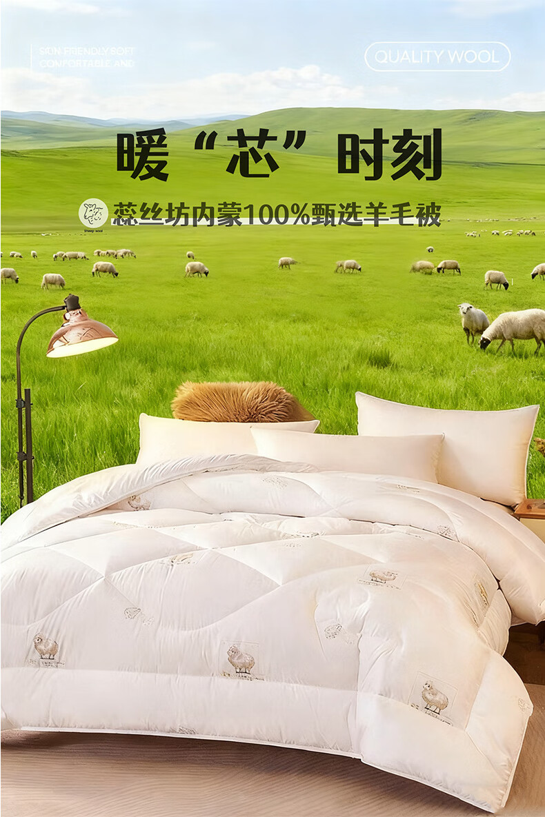 蕊丝坊 内蒙100%甄选羊毛被加厚冬被