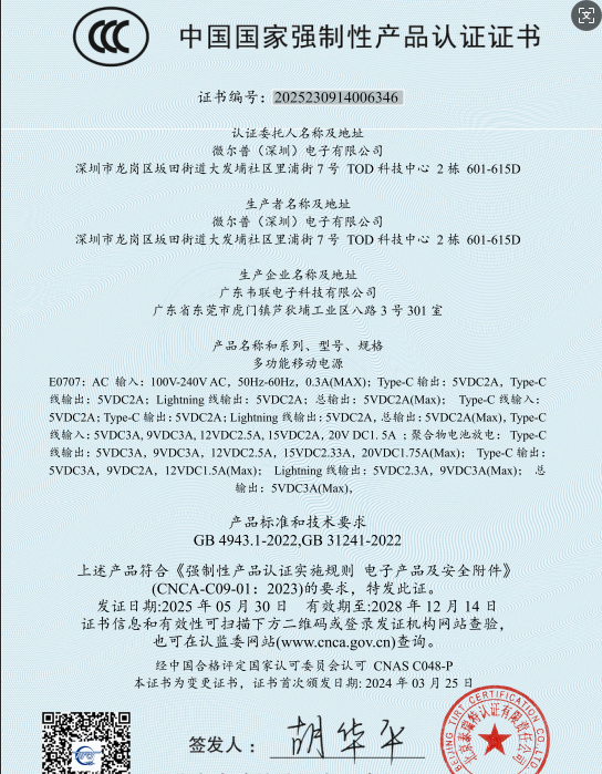 自带双线,自带AC插头;自带编织线材,经久耐用;国家3C认证,可上飞机