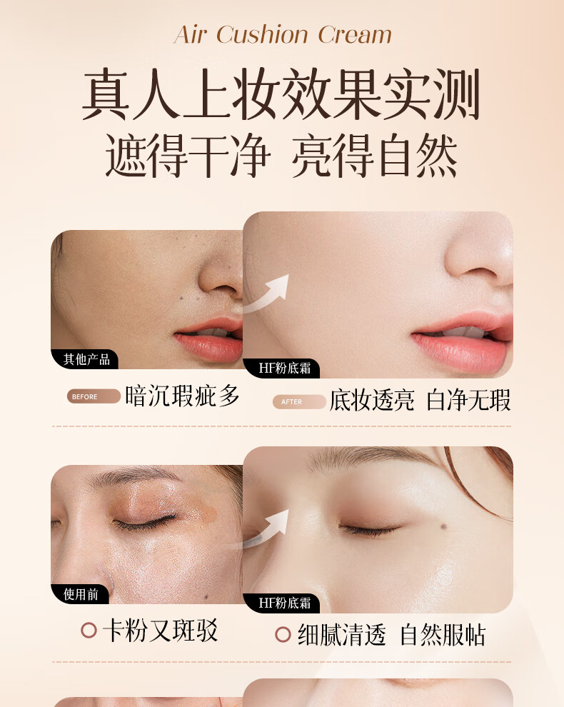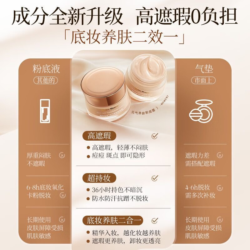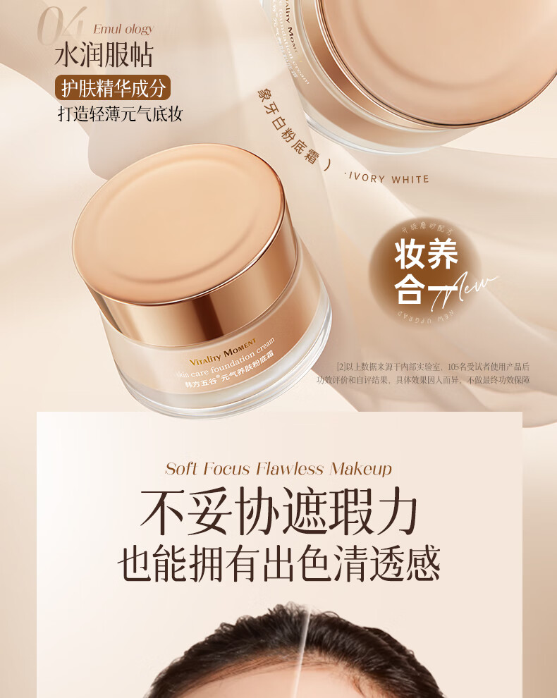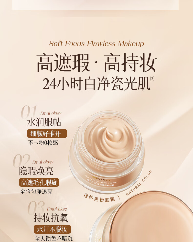 遮瑕持久防水不脱妆;自然隐形裸妆素颜霜;不卡粉不斑驳