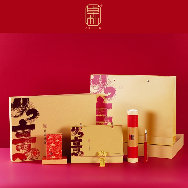 尺寸:台历210*150mm 签字笔138*11mm 冰箱贴80*40mm 春联1180*210mm
