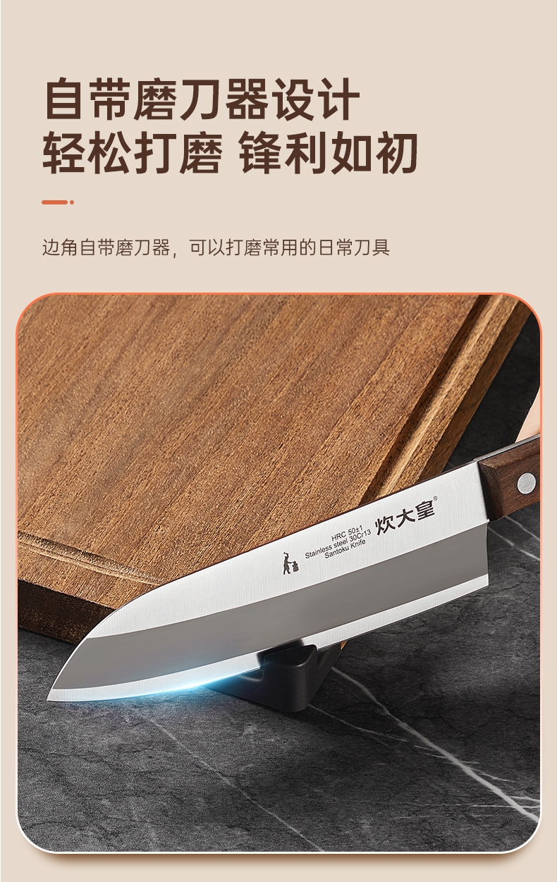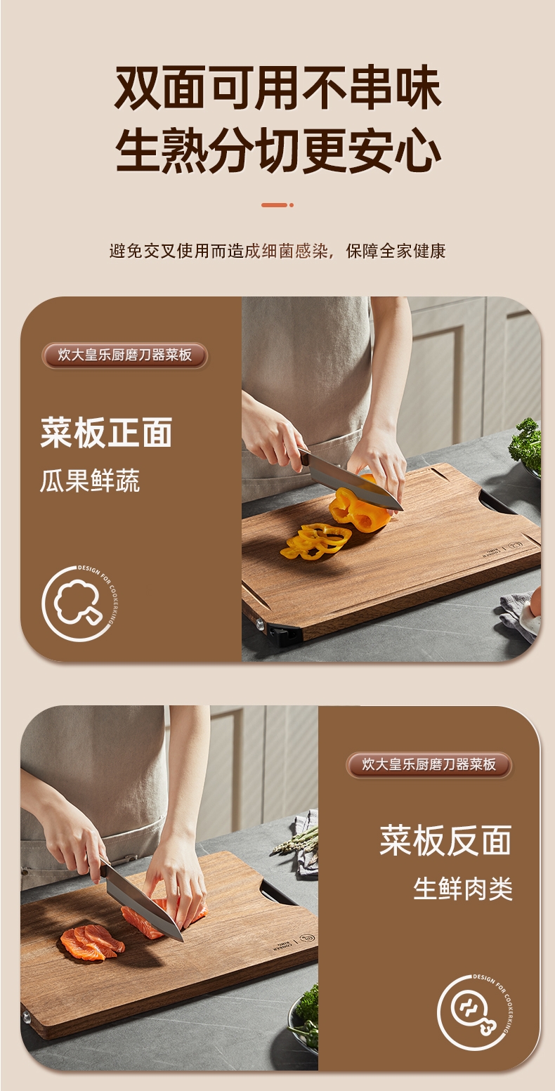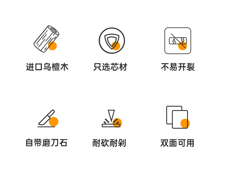 进口乌檀木;耐砍耐剁;自带自带磨刀石磨刀石