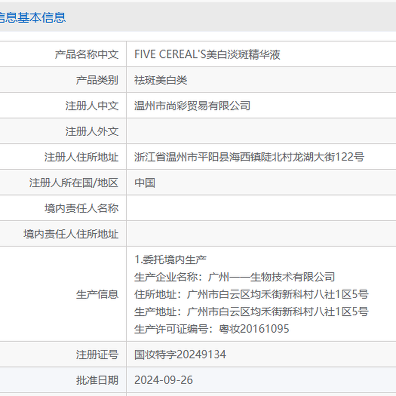 功效:淡斑,美白,提亮肤色