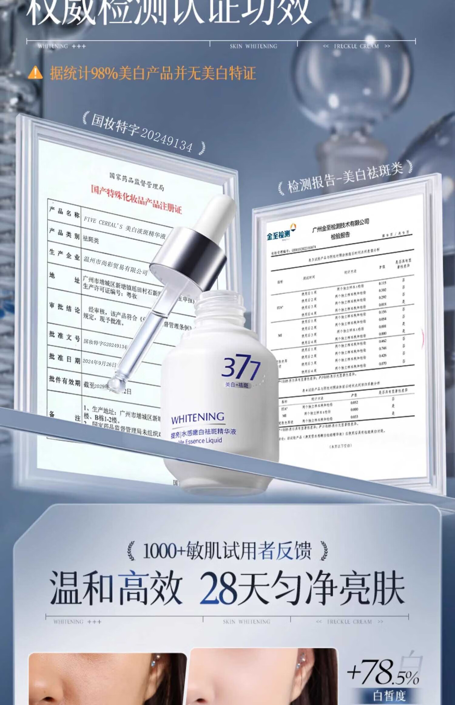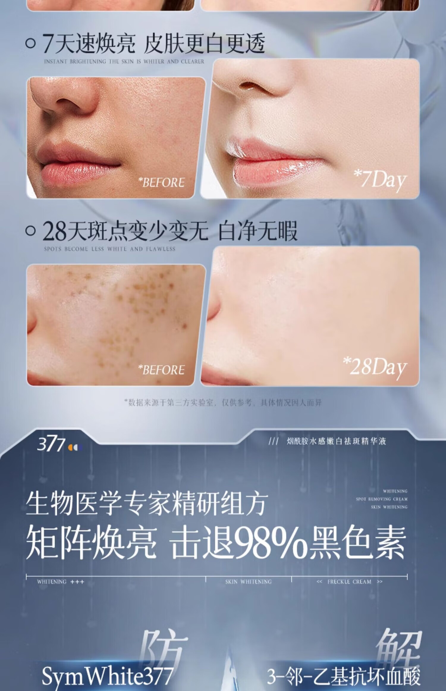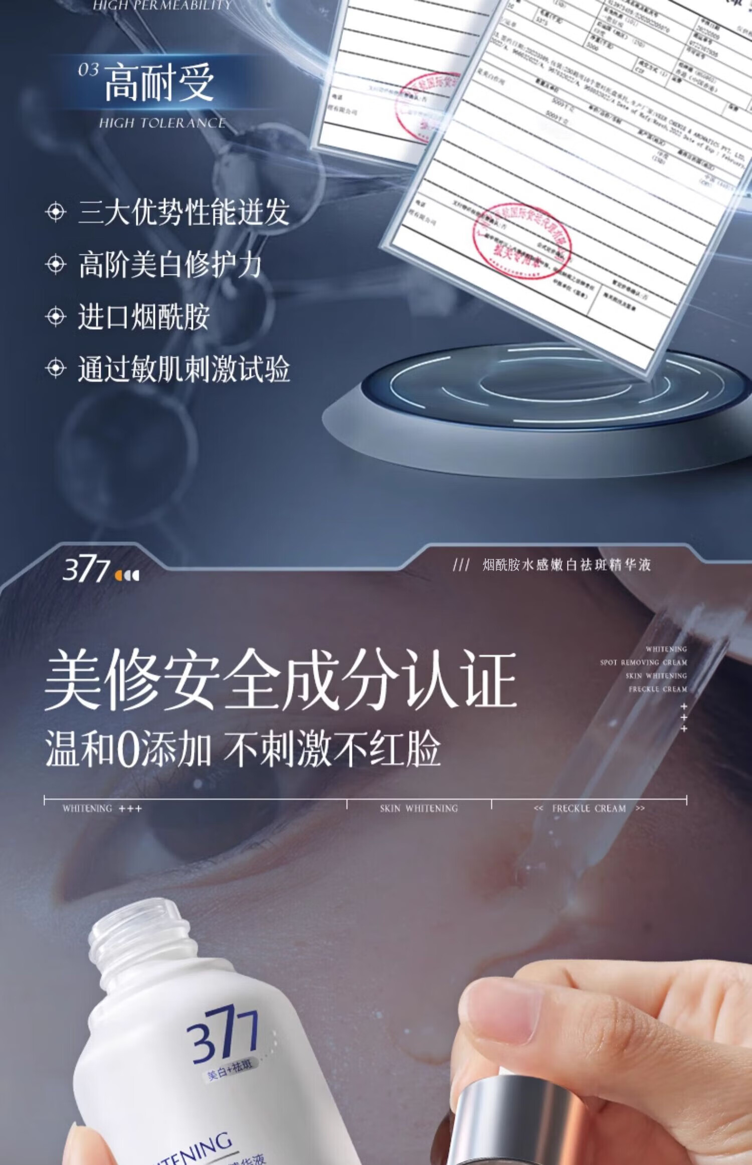 主要功效成分:377,熊果素,烟酰胺