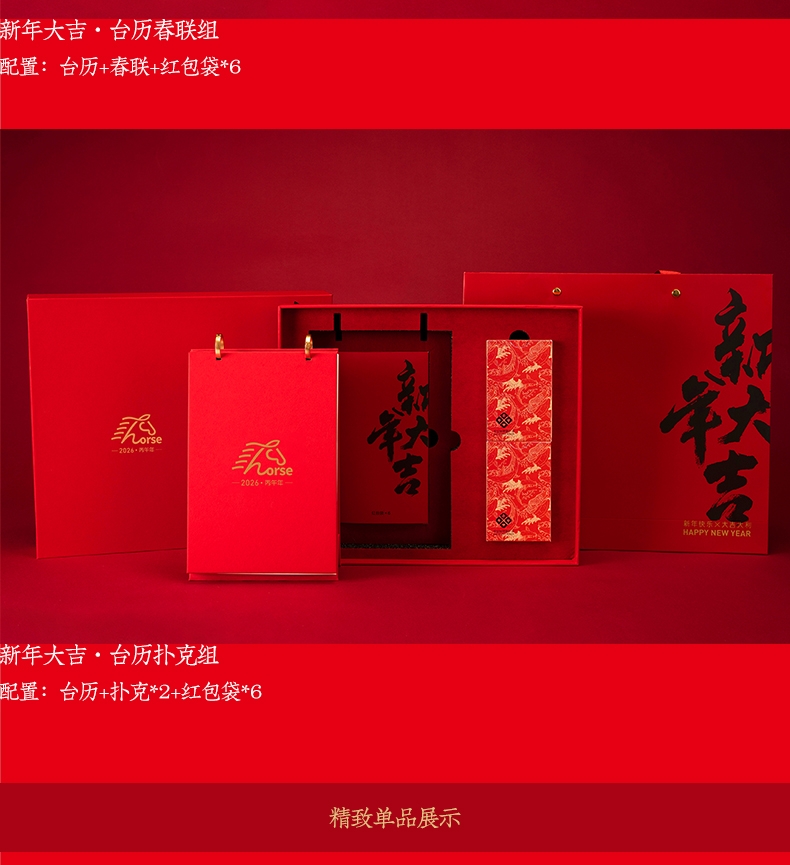 尺寸:台历140*235mm 红包袋95*175mm 春联210*1180mm