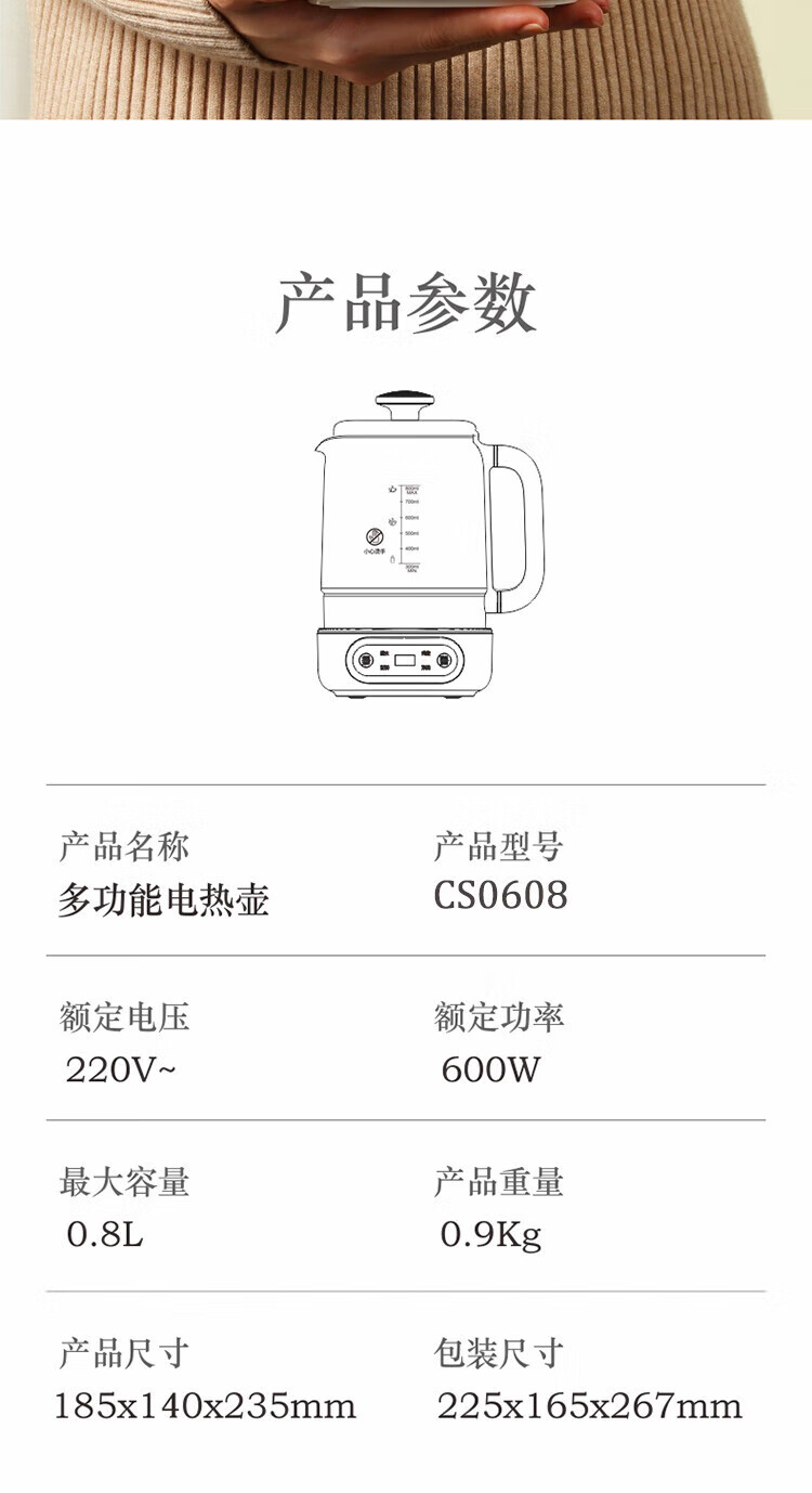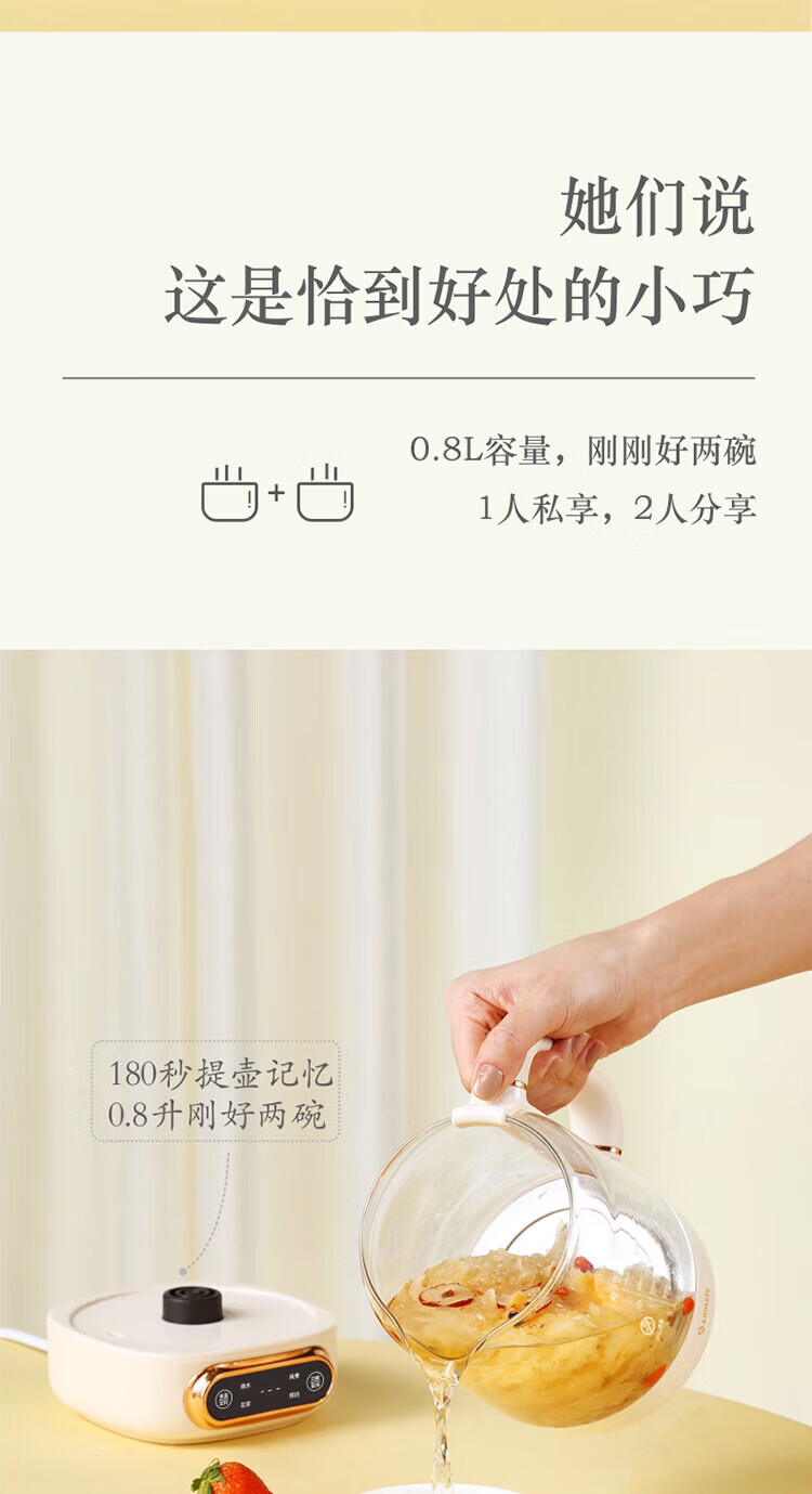 造型美观,精致复古;透明玻璃壶身,易清洗;0.8L容量,一人私享,两人分享