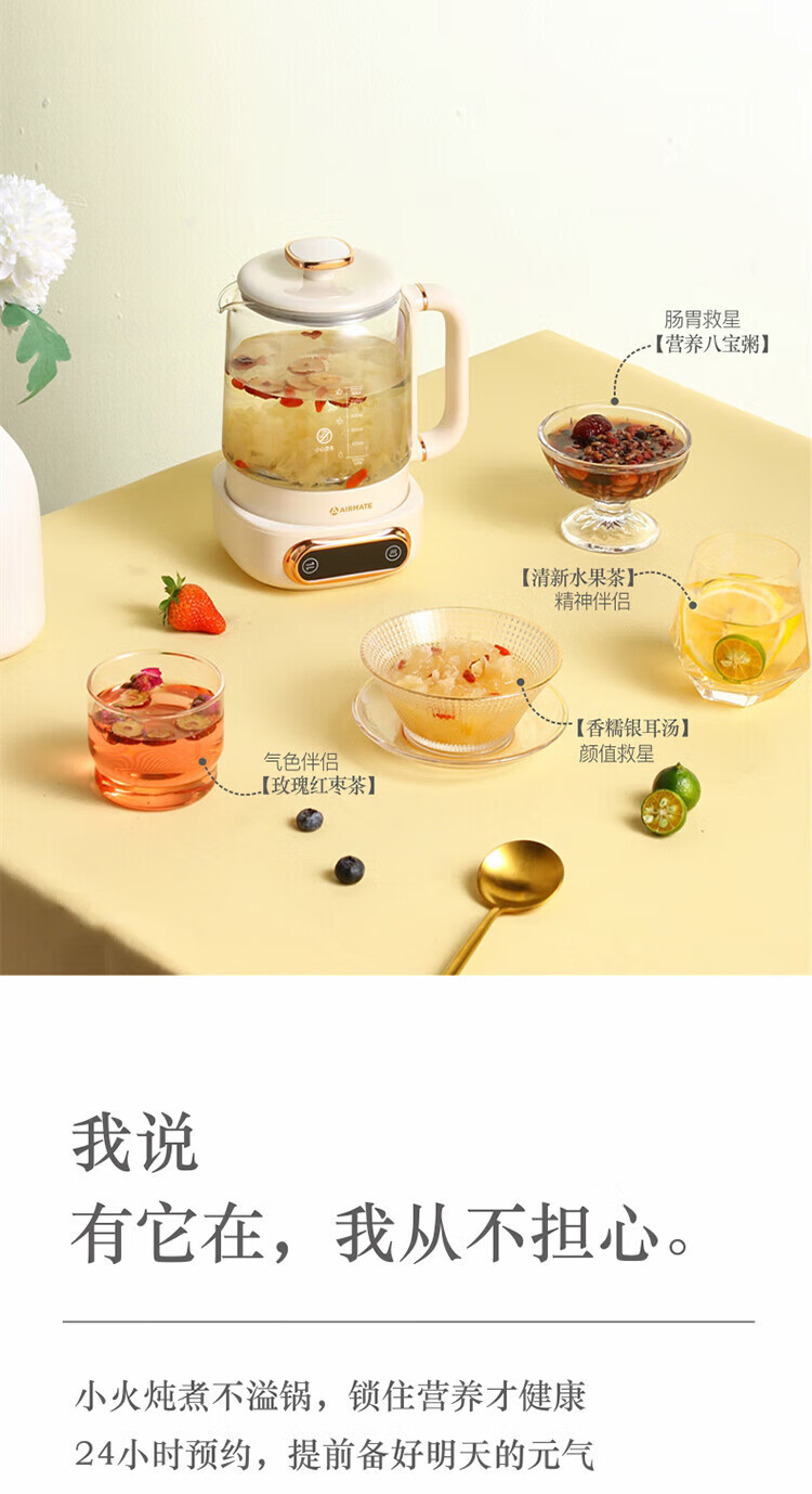 艾美特 自动蒸汽茶水分离养生壶0.8LCS0608